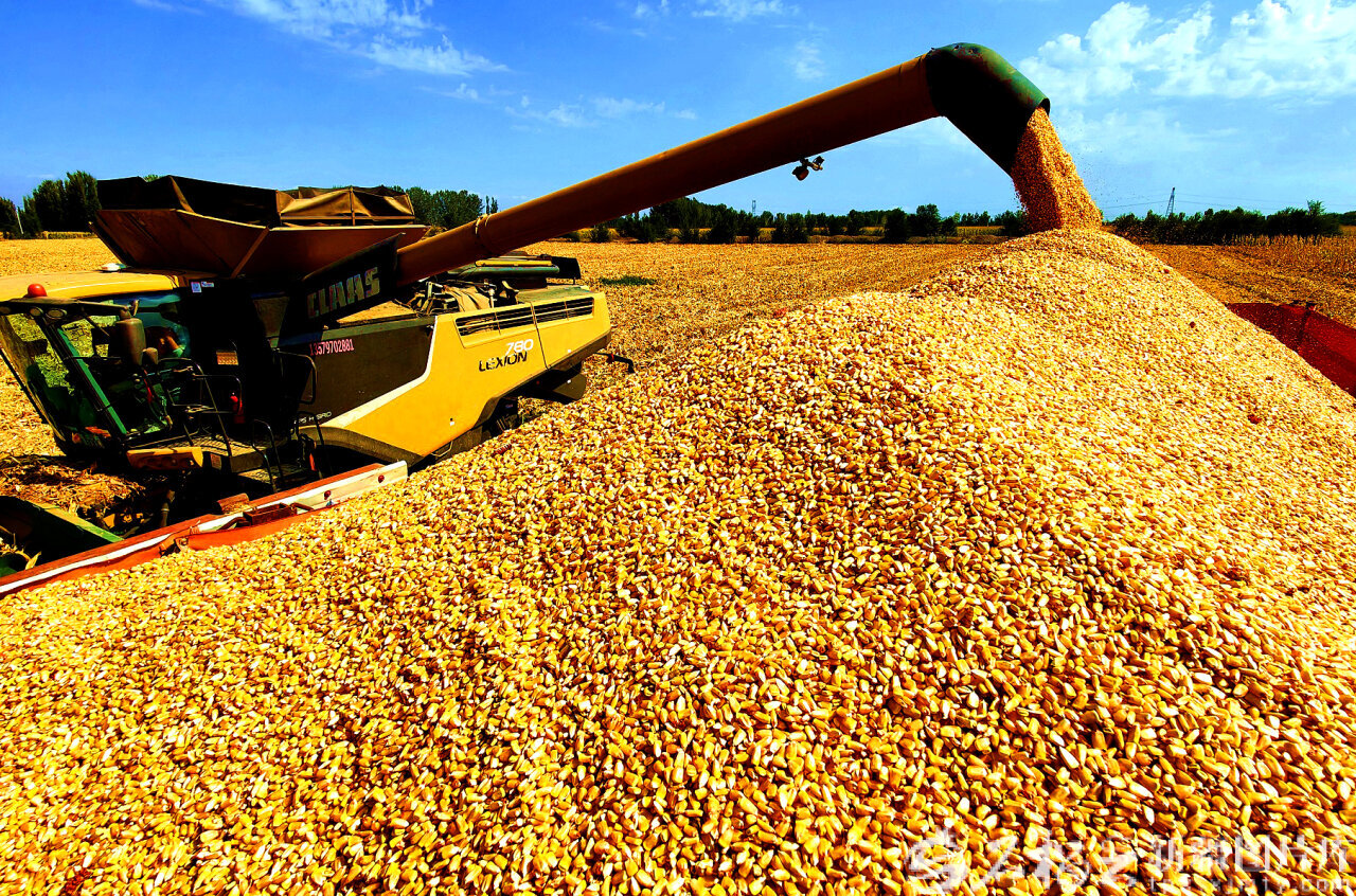 9月18日,种植户在察布查尔锡伯自治县永祥农业种植专业合作社的玉米基地收获玉米。华岩明摄