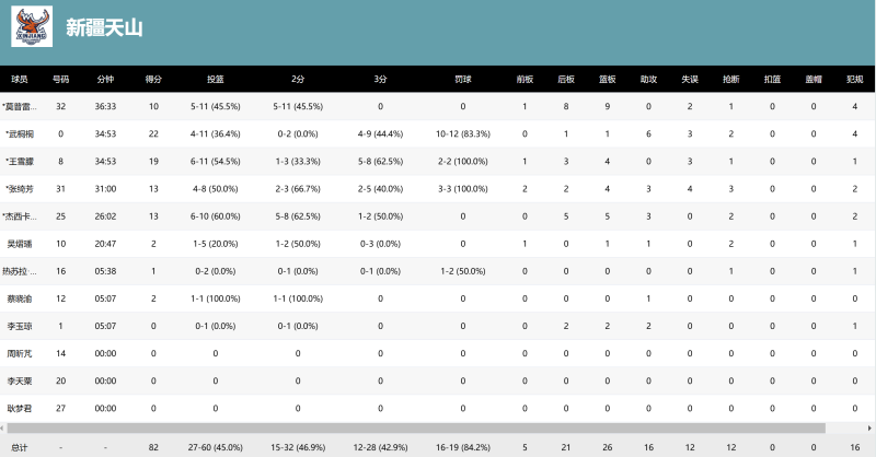 12月16日晚,新疆天山女篮在客场爆冷,以82∶79战胜了此前排名积分榜第3名的山东女篮,也凭借胜利,将排名提升到了第三名。详情>>>