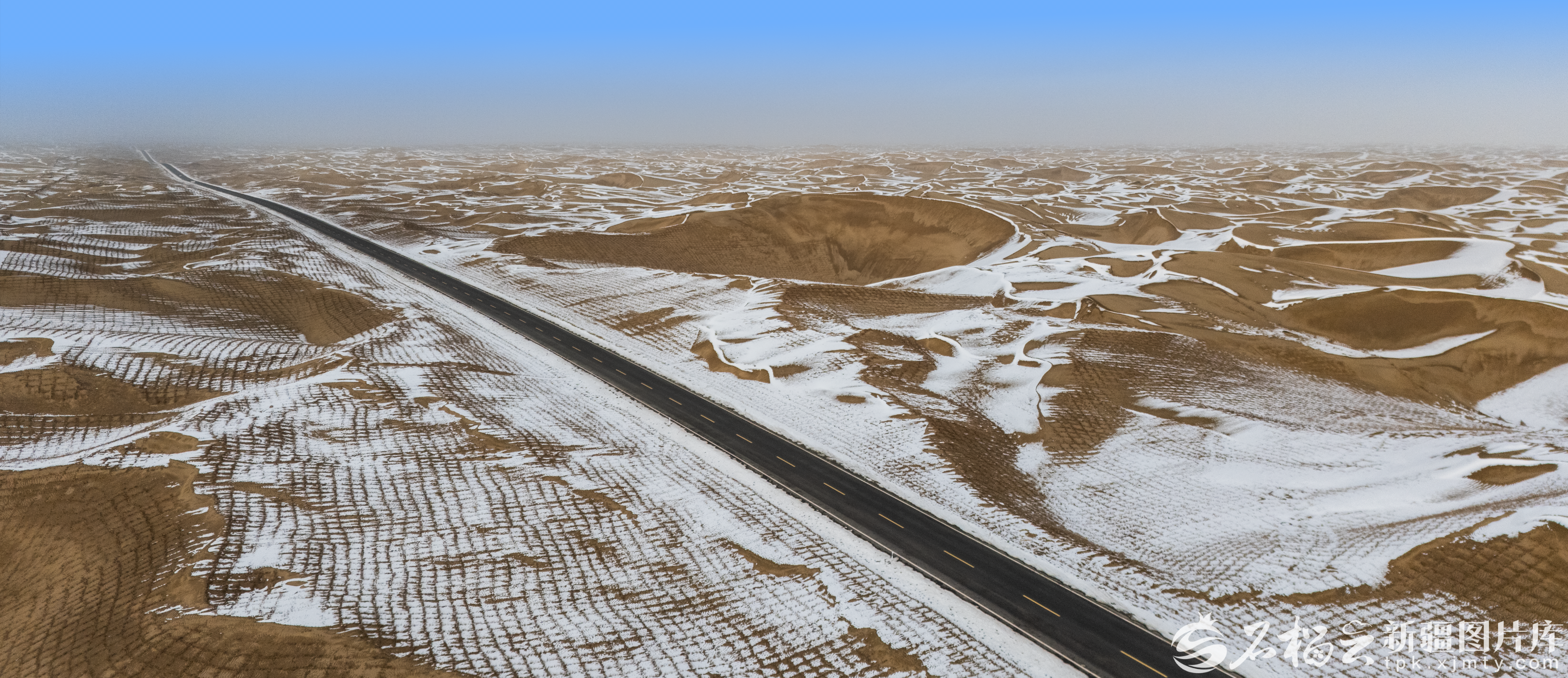 尉(犁)且(末)沙漠公路雪景(无人机拍摄)。孟亚军 摄