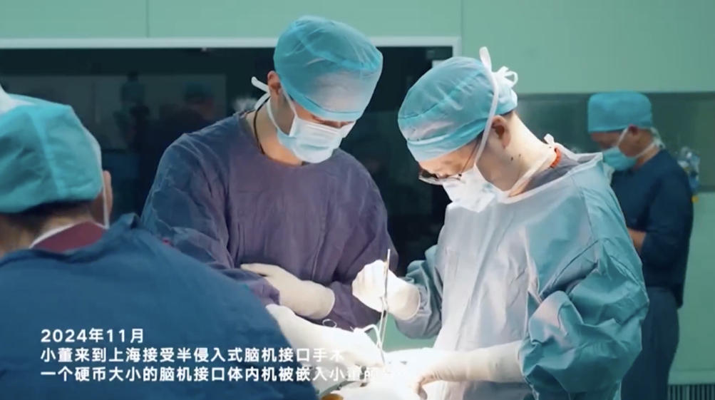 董辉,2020年8月,因车祸外伤导致颈段脊髓受损, 2024年11月做了脑机接口植入手术。“脑机接口”技术,就是将脑电信号转化为计算机控制信号的系统。