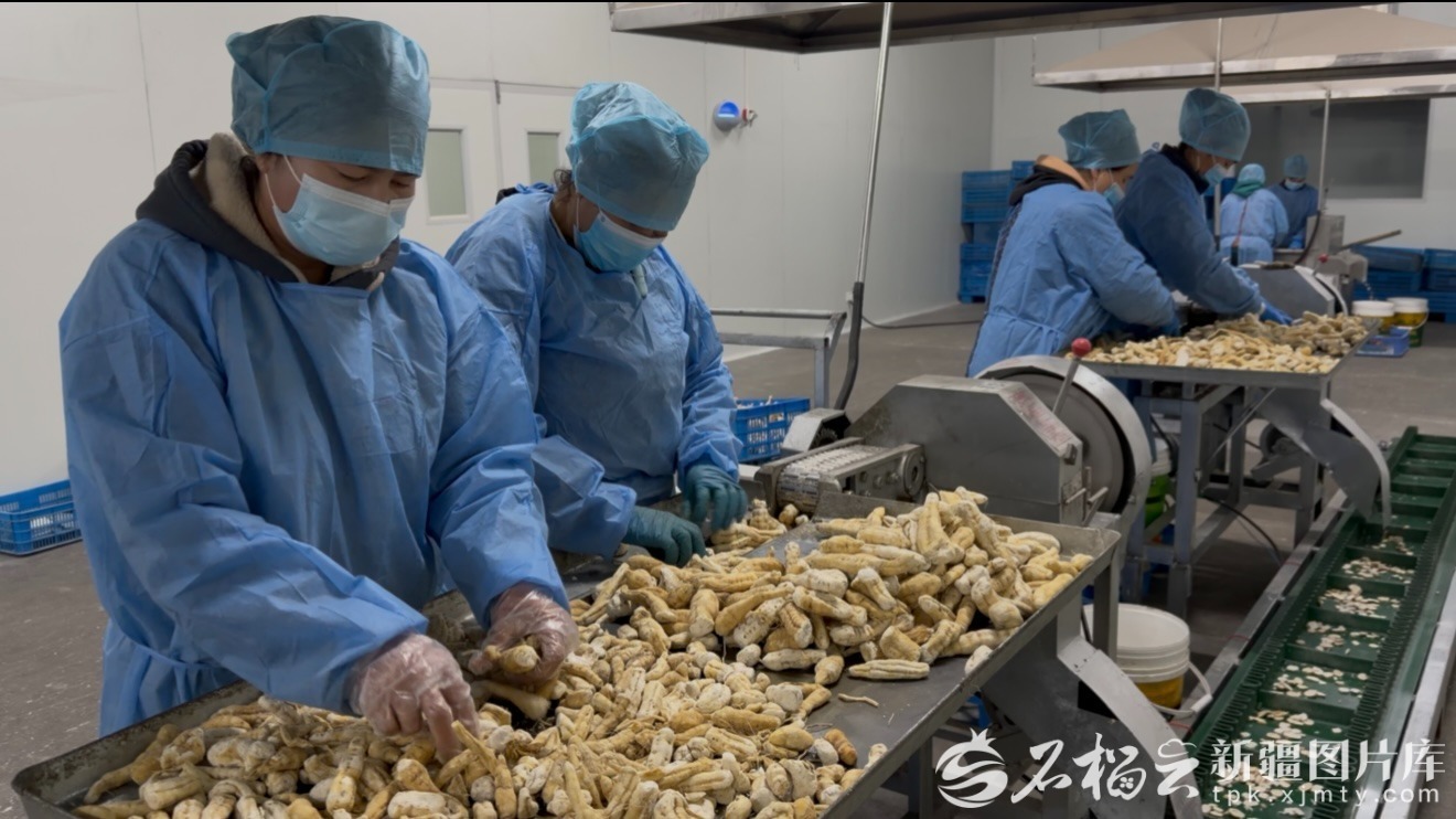 在新疆徽岳记生物科技有限公司中药饮片厂,员工们正在进行切片作业。新疆徽岳记生物科技有限公司供图