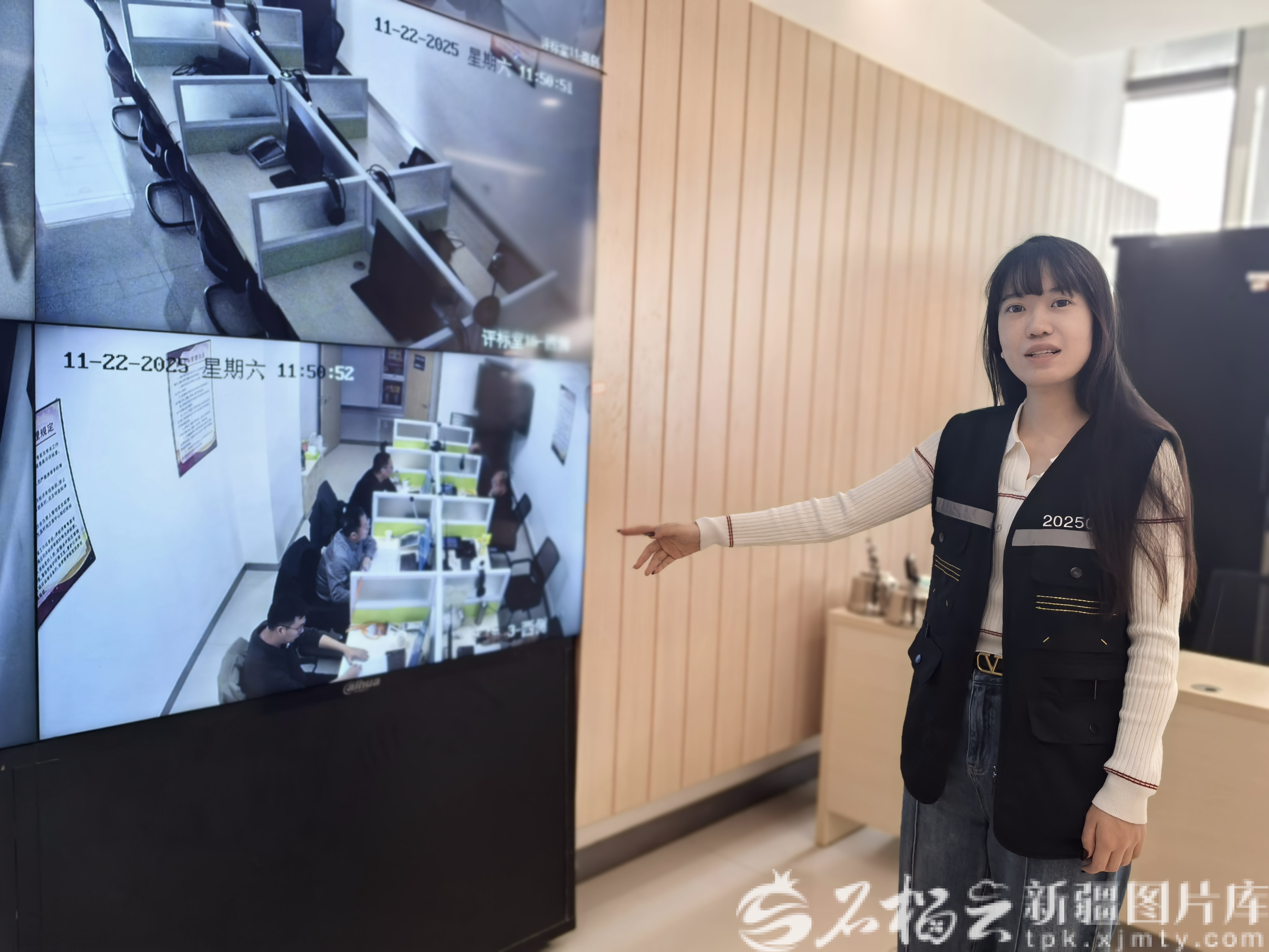 11月22日,在自治区公共资源交易中心监控室内,工作人员介绍评标监控情况。天山网-新疆日报记者赵悦摄