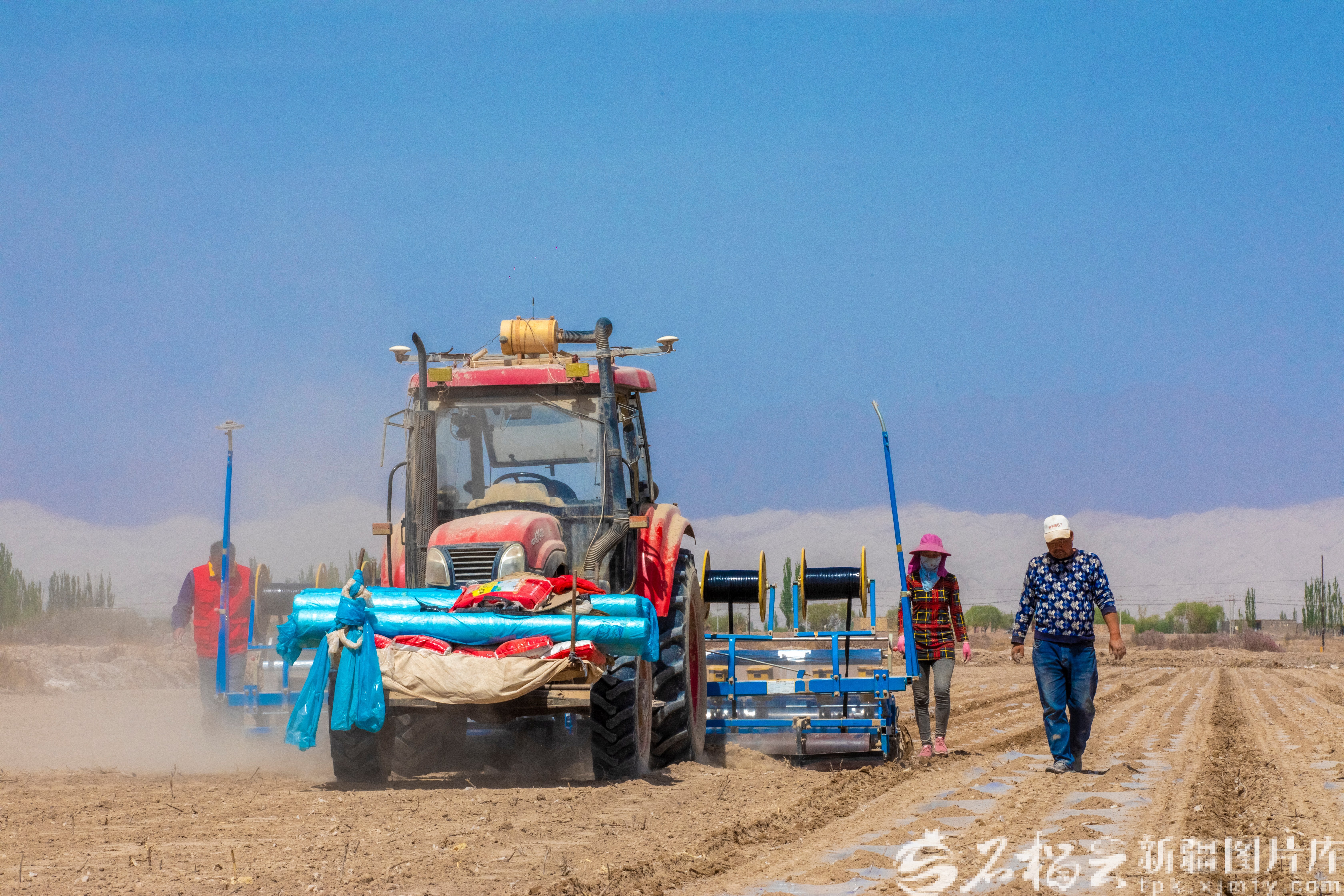 克州阿图什市,北斗导航无人驾驶棉花播种机播种现场(资料图)。谢智摄