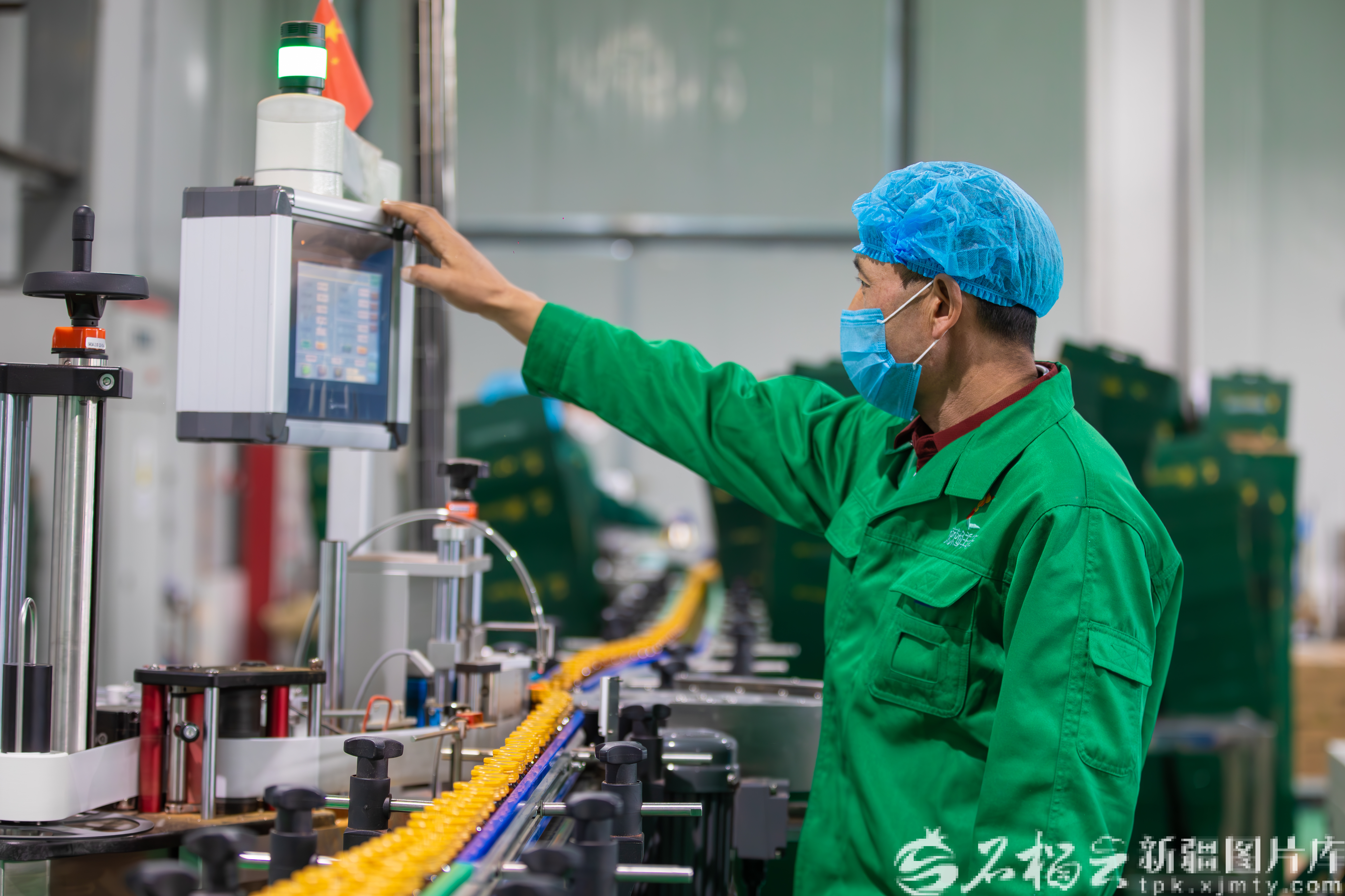 阿合奇县阿合奇镇,新疆中科沙棘科技有限公司员工在操作设备(资料图)。谢智摄