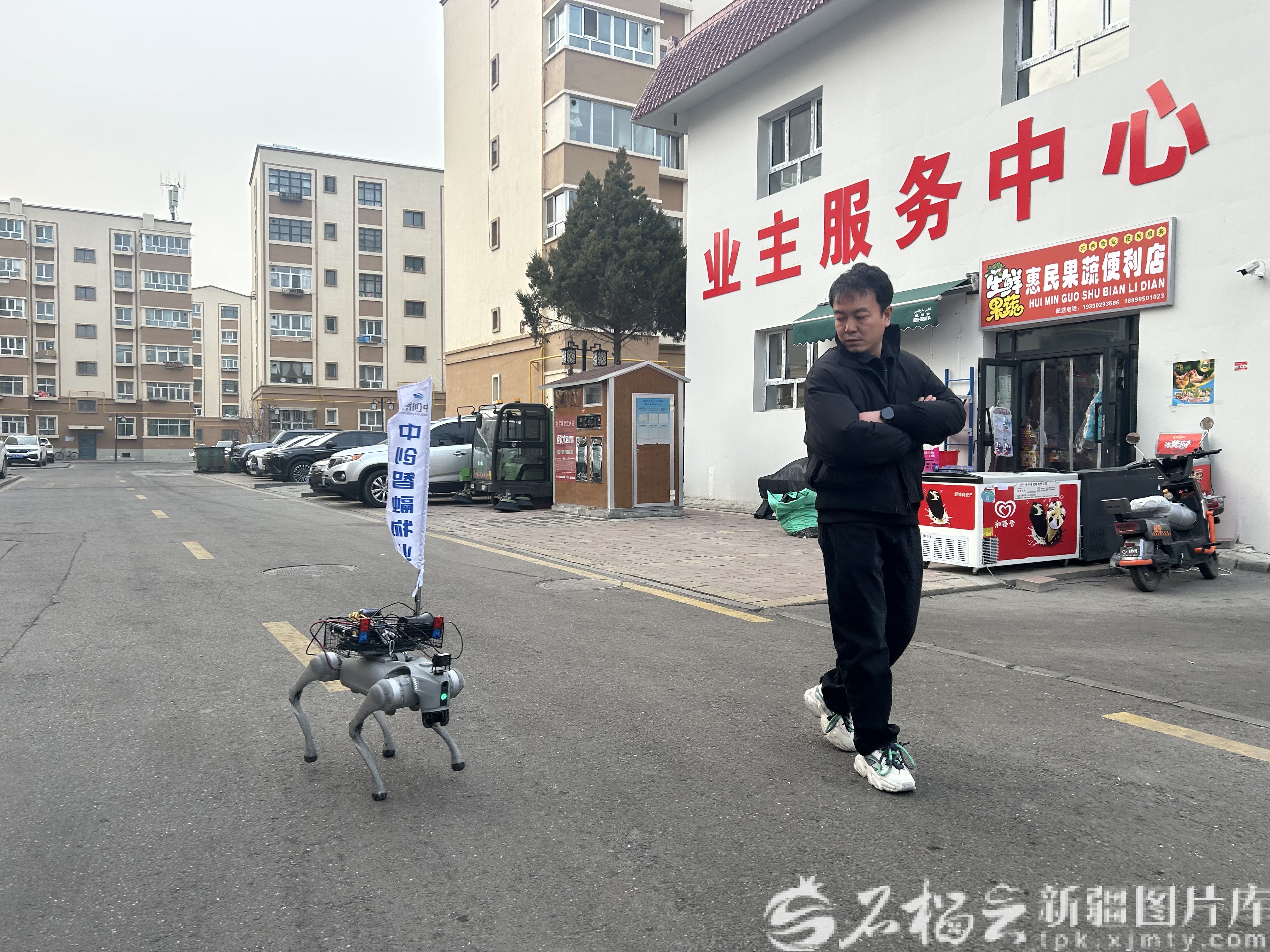 “行人闯红灯是违法行为。”“老人上下楼梯要扶好扶手,慢慢走哟!”12月19日,伊宁市喀赞其街道博斯坦社区博斯坦小区里,一阵清脆又亲切的提示音顺着微风飘来。循声望去,一个“机器狗”正迈着稳稳的步子在楼栋间穿梭:银灰色的身体裹着轻便外壳,背上还驮着个小巧的喇叭,四条机械腿灵活地避开路边的石墩和小区里停放的车辆。路过的居民纷纷停下脚步,有的掏出手机对准它拍摄,有的在旁边小声喊“机器小狗”。这个“科技明星”在小区已活跃半年了。