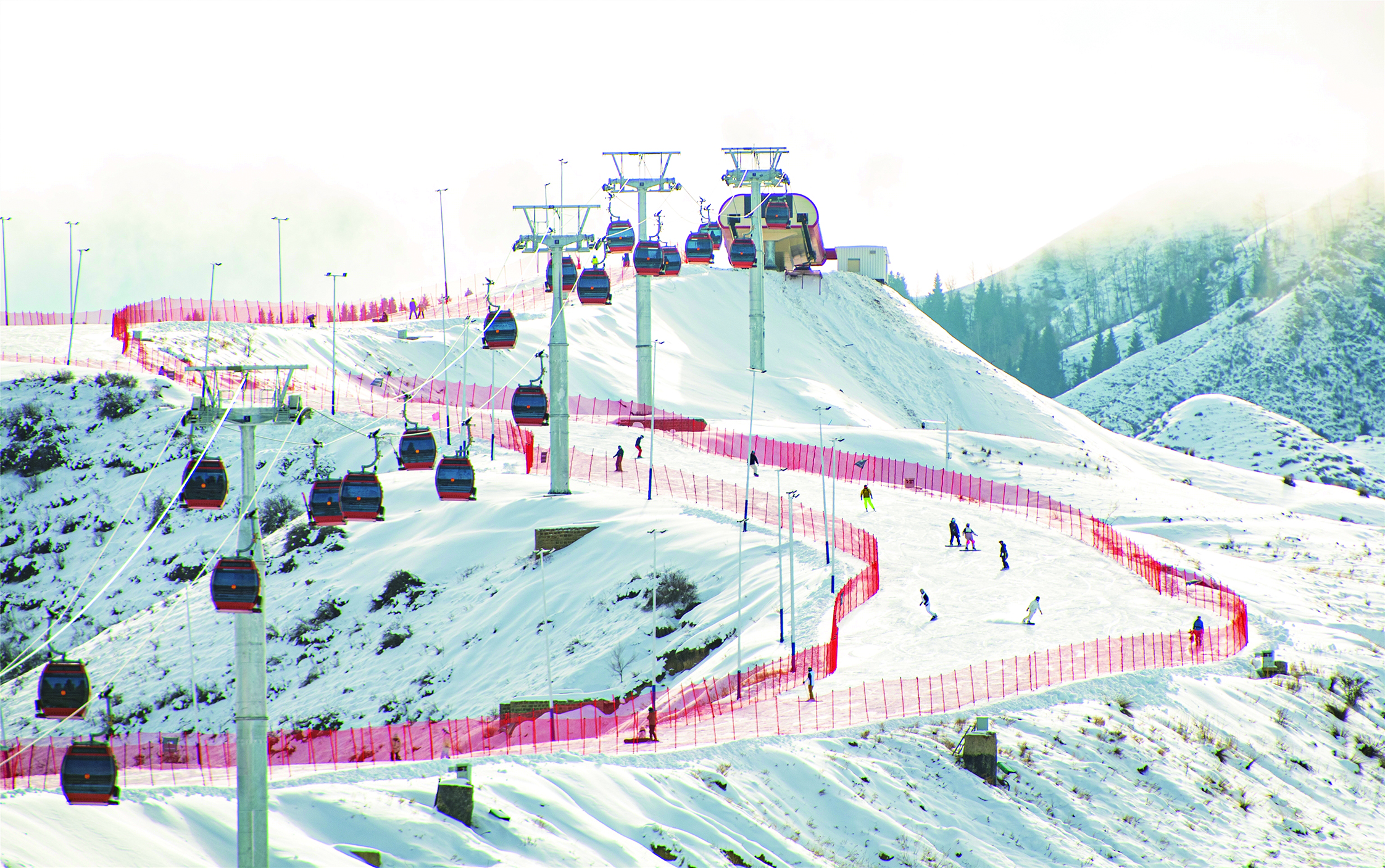 游客在阜康市天山天池国际滑雪场滑雪。何龙/摄