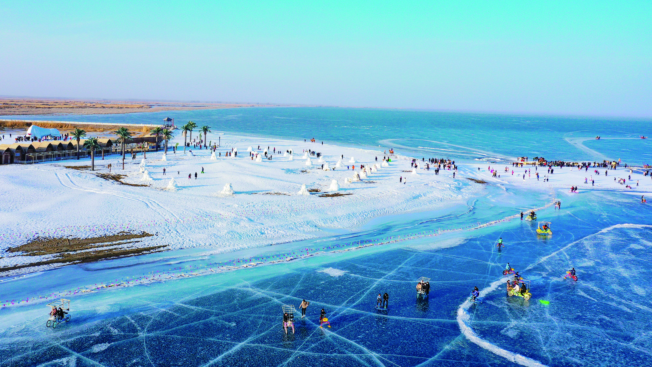游客在博斯腾湖冰面上体验冰雪旅游项目。年磊/摄
