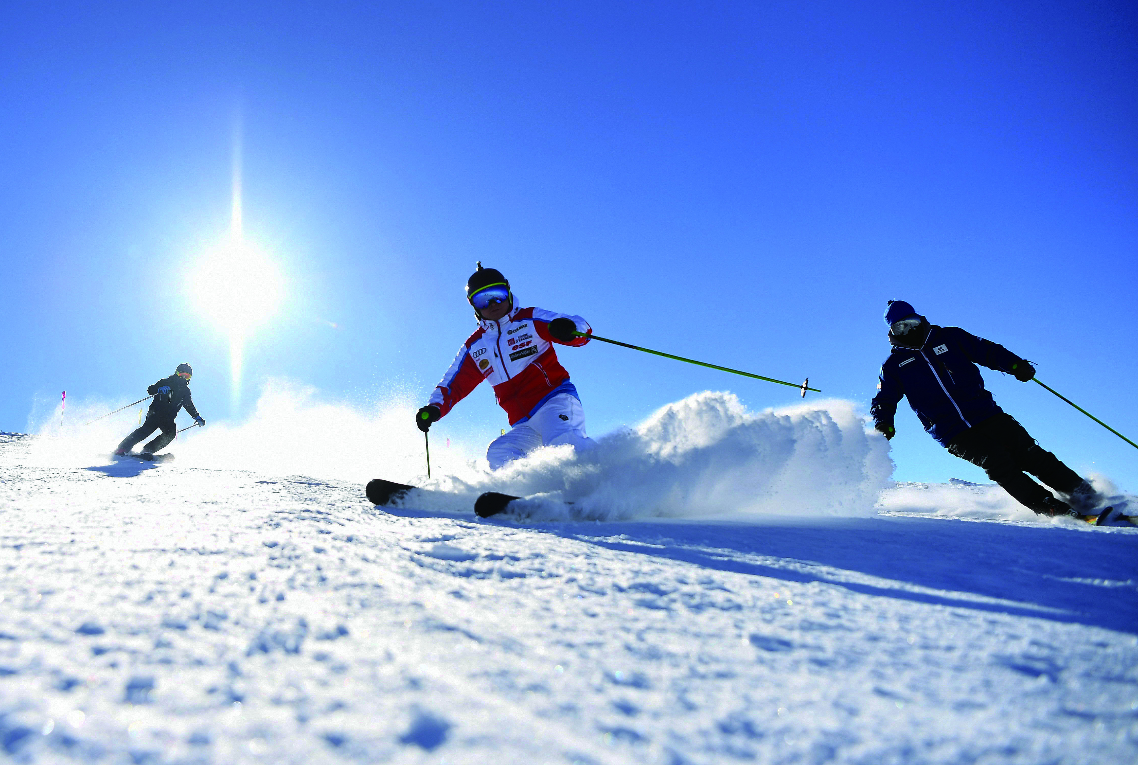 滑雪爱好者在可可托海国际滑雪场滑雪。沙达提/摄
