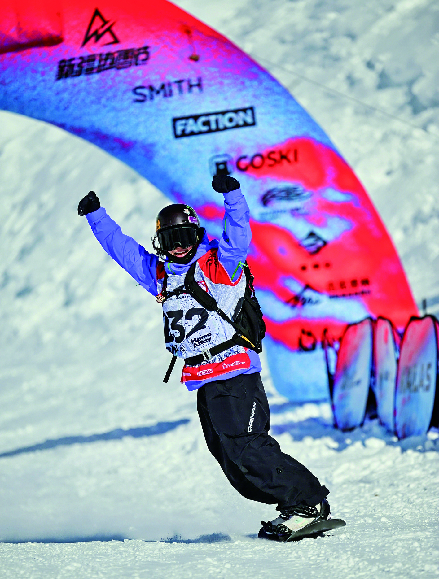 一名参加2024—2025赛季FWT世界野雪巡回赛三星资格赛的选手冲过终点。周鹏/摄