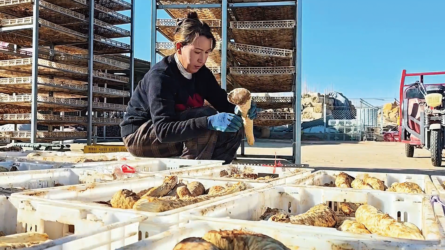 民丰县尼雅镇甫甫克村村民分选鲜肉苁蓉。图拉罕・奥斯曼/摄