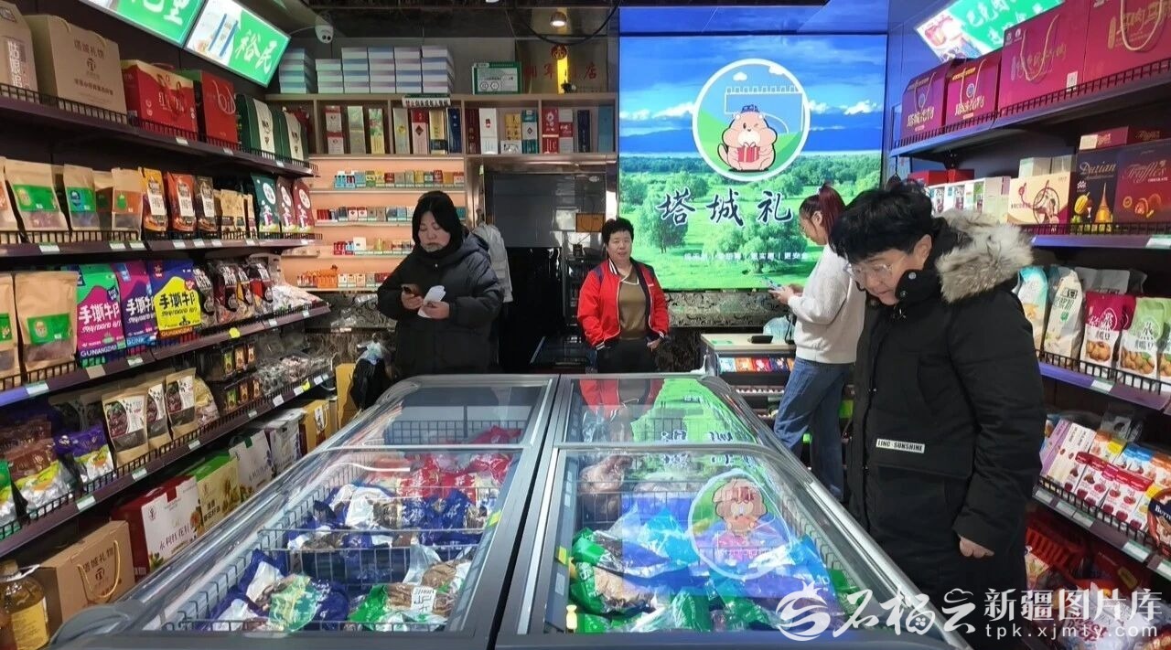 塔城地区红花籽油等多款产品入选“品味新疆”好产品,受到消费者欢迎。图为12月23日塔城市一家土特产门店里,消费者在挑选“品味新疆”好产品。才永红摄