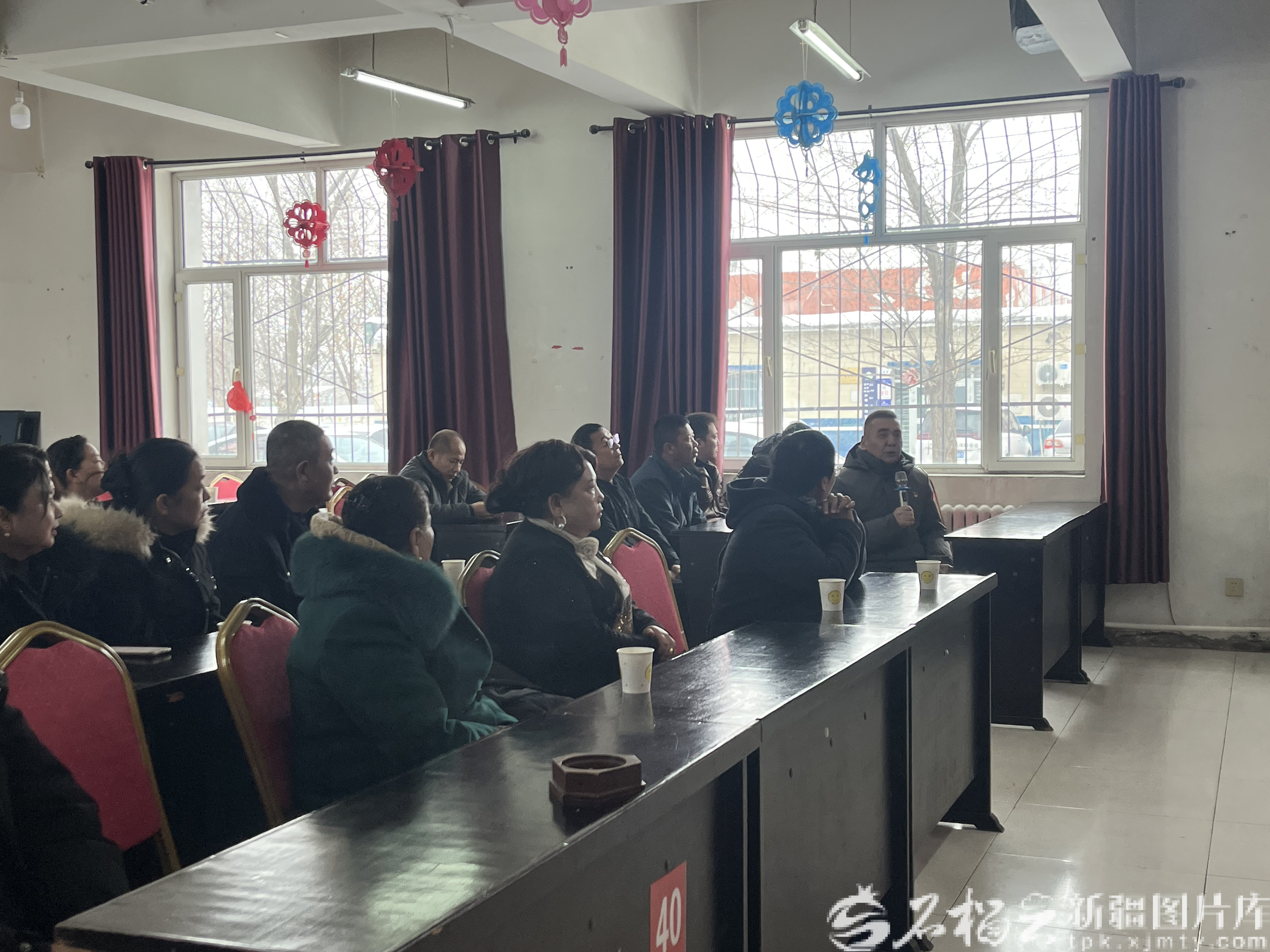 12月23日,在乌鲁木齐市米东区芦草沟乡芦草沟村的民族团结故事分享会上,村民玉苏甫江·热西(第一排右一)在讲述他的故事。天山网-新疆日报记者 郭宏磊摄