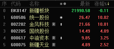 12月29日新疆板块股价涨幅排名。(来源:东方财富)