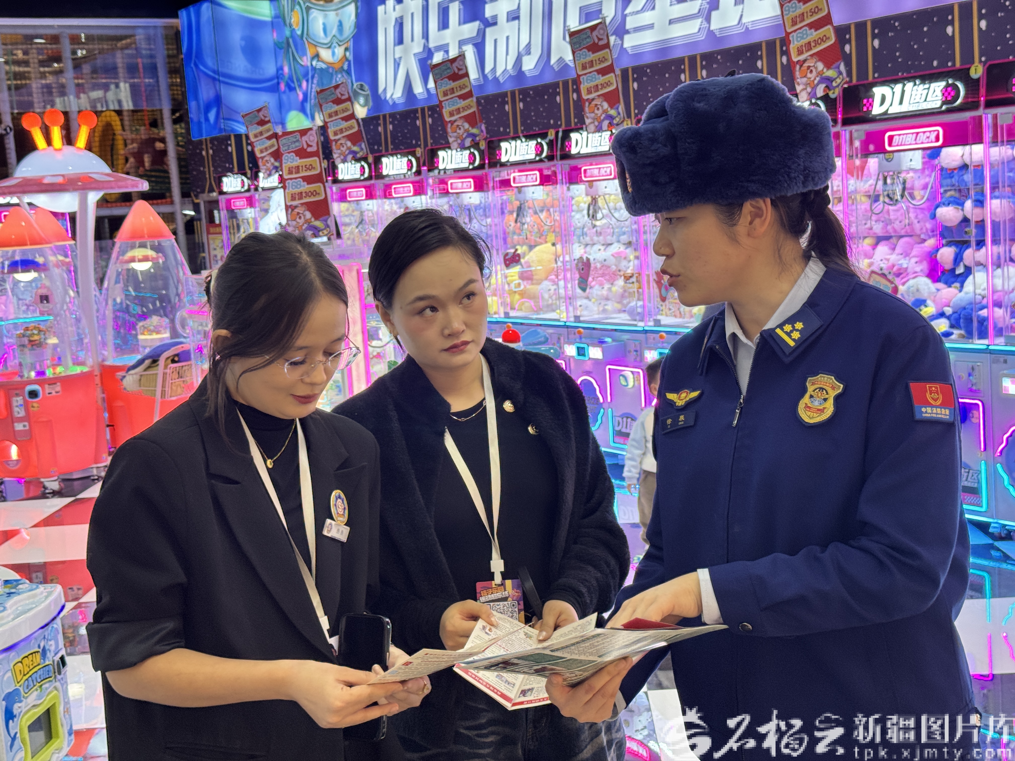 乌鲁木齐市消防救援支队新市区大队走进美美3综合购物中心,重点核查疏散通道、安全出口畅通情况及消防设施完好性,特别关注儿童娱乐场所楼层设置、电气线路等安全条件,并向商户和顾客普及用火用电、火场逃生知识,鼓励公众参与隐患排查。