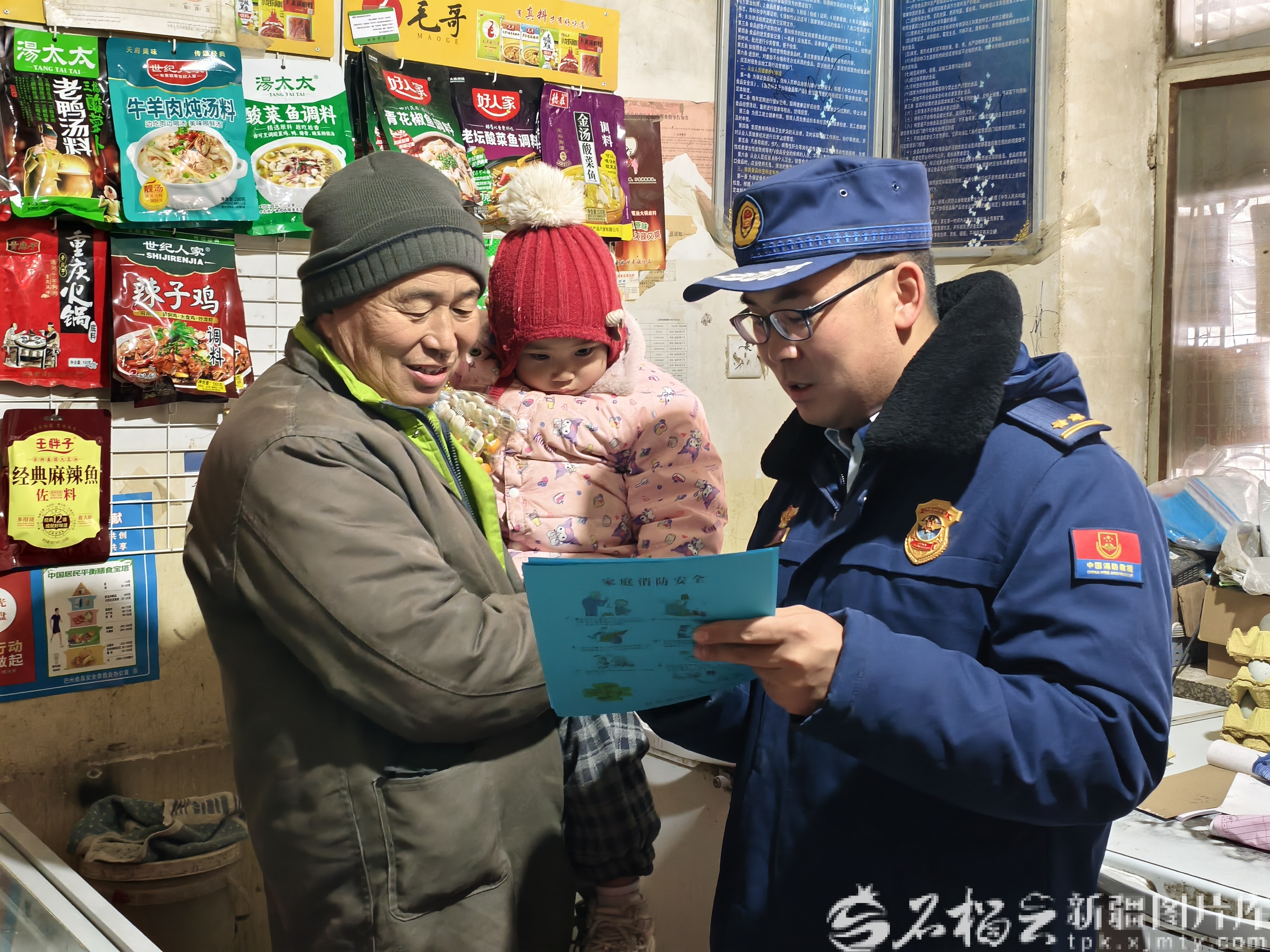 近日,且末县消防救援支队消防监督员走进商铺开展消防安全宣传活动。周杰摄