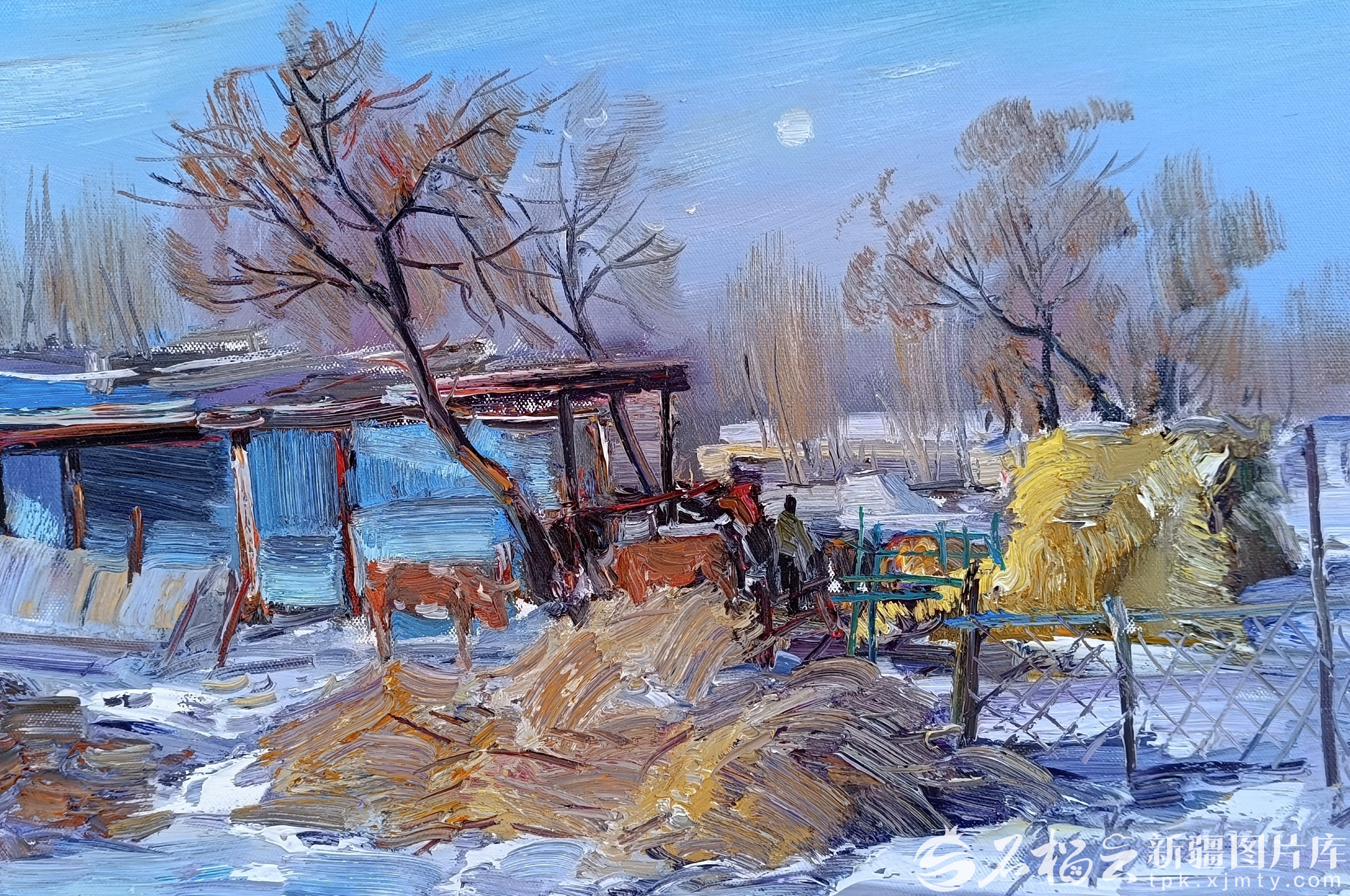 冬日里,吉木萨尔县新地乡小分子村宛如一幅静谧的水墨画卷,在天山脚下徐徐铺展。60岁的张新香刚收拾完家务,便铺开画纸,拿起画笔,勾勒家乡的冬日美景。“现在农闲了,我就跟着村里的画家们学画画,既能记录家乡的美景,也算是圆了小时候的梦。”这位曾因生计奔波而搁置画笔的农家妇女,直到艺术家们走进小分子村,才重新找回了对绘画的热情。如今,她已完成十余幅描绘家乡风光的画作。