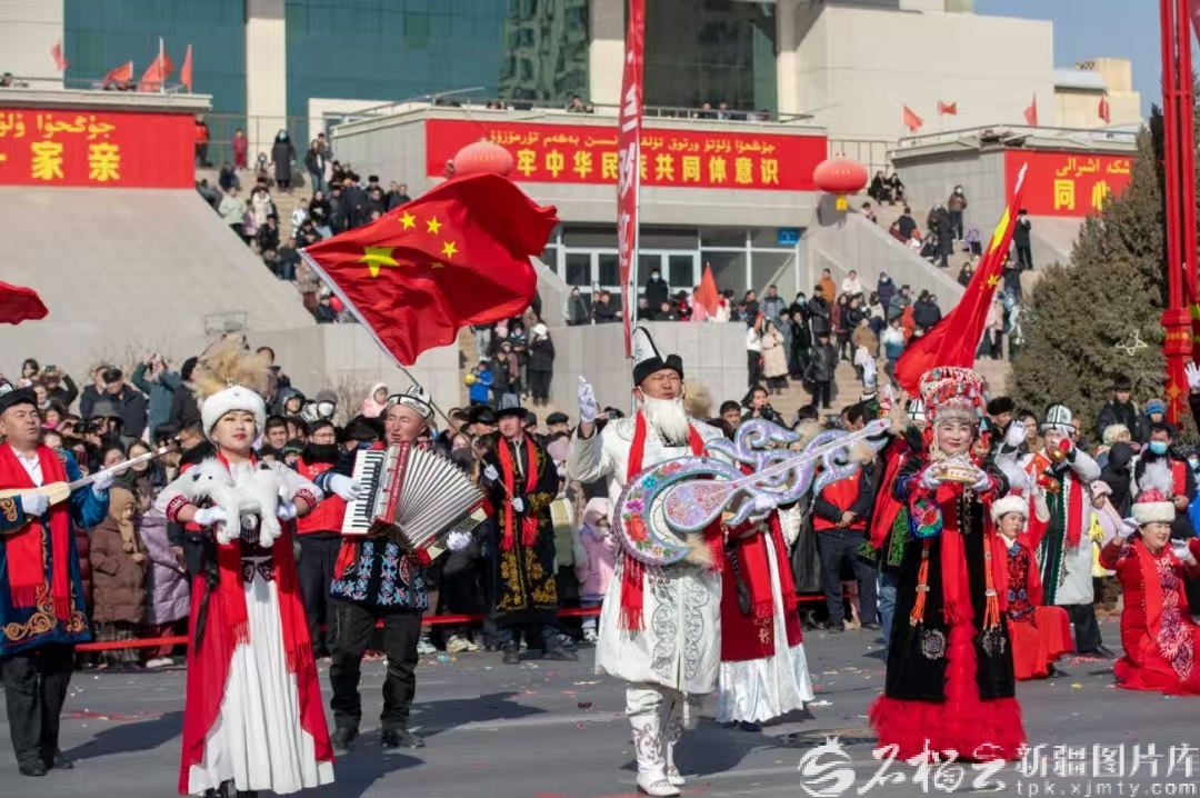 非遗传承人玛纳斯·居玛洪带着《玛纳斯与阿勒曼别特的兄弟情缘》等经典剧目,赴疆内外展演23场次,6.4万余名观众在激昂的说唱中感受民族团结的力量。