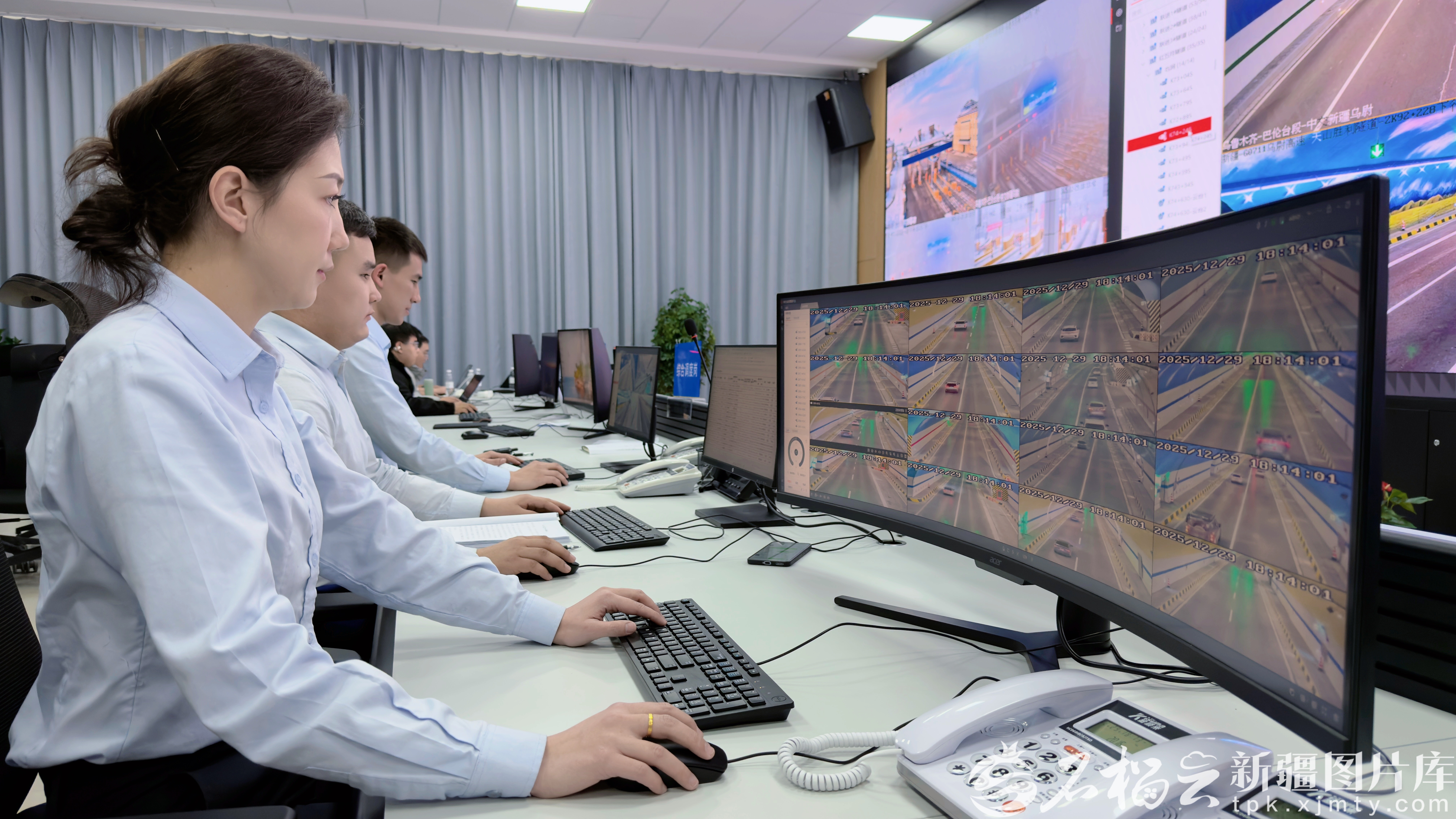 12月29日,工作人员通过乌尉高速综合智慧管控平台查看道路情况。图/中交新疆乌尉公路包运营团队提供