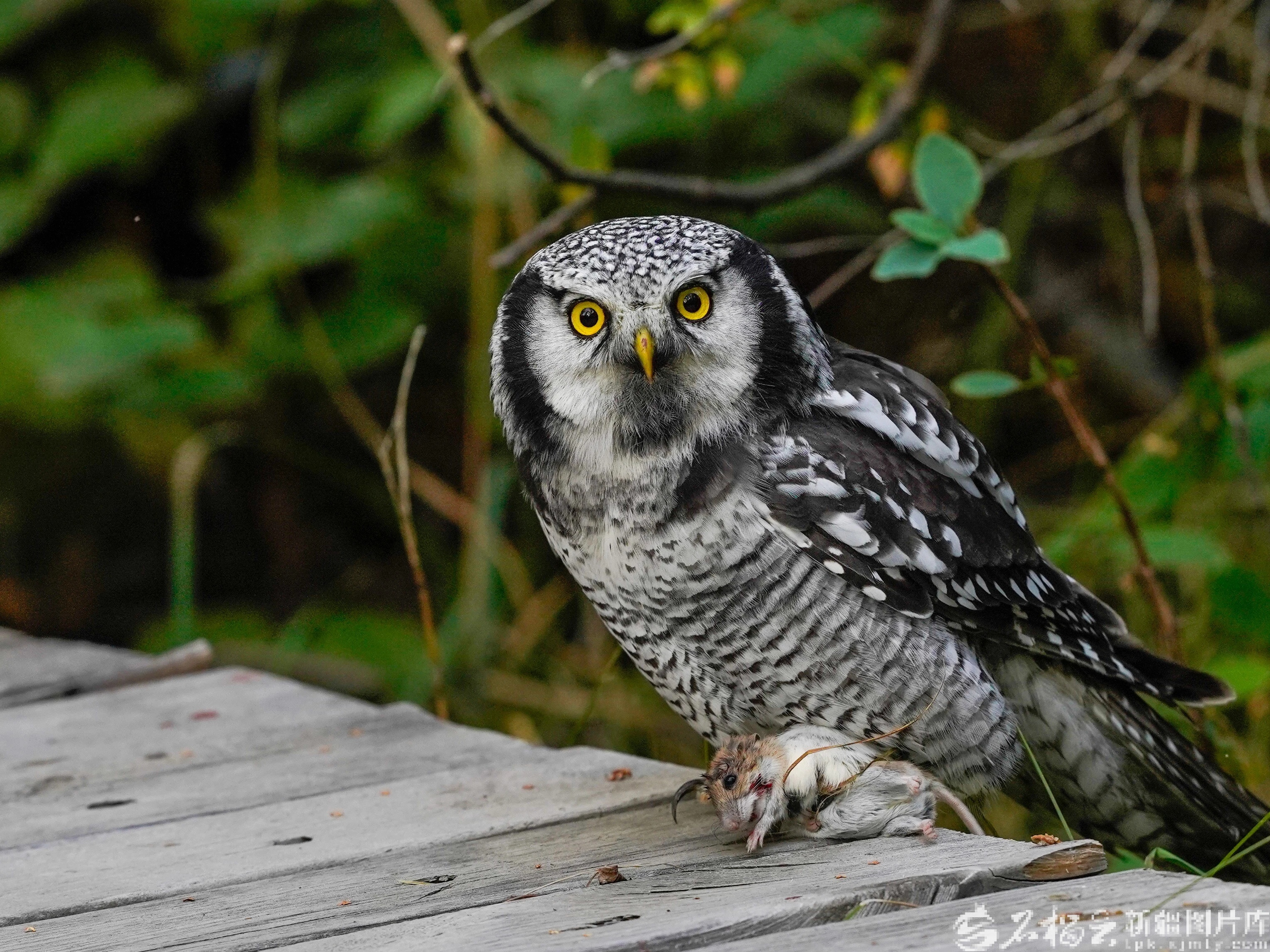 2025年8月22日,广东观鸟爱好者@meimei在阿勒泰市桦林公园偶遇了猛鸮捕鼠的精彩瞬间。