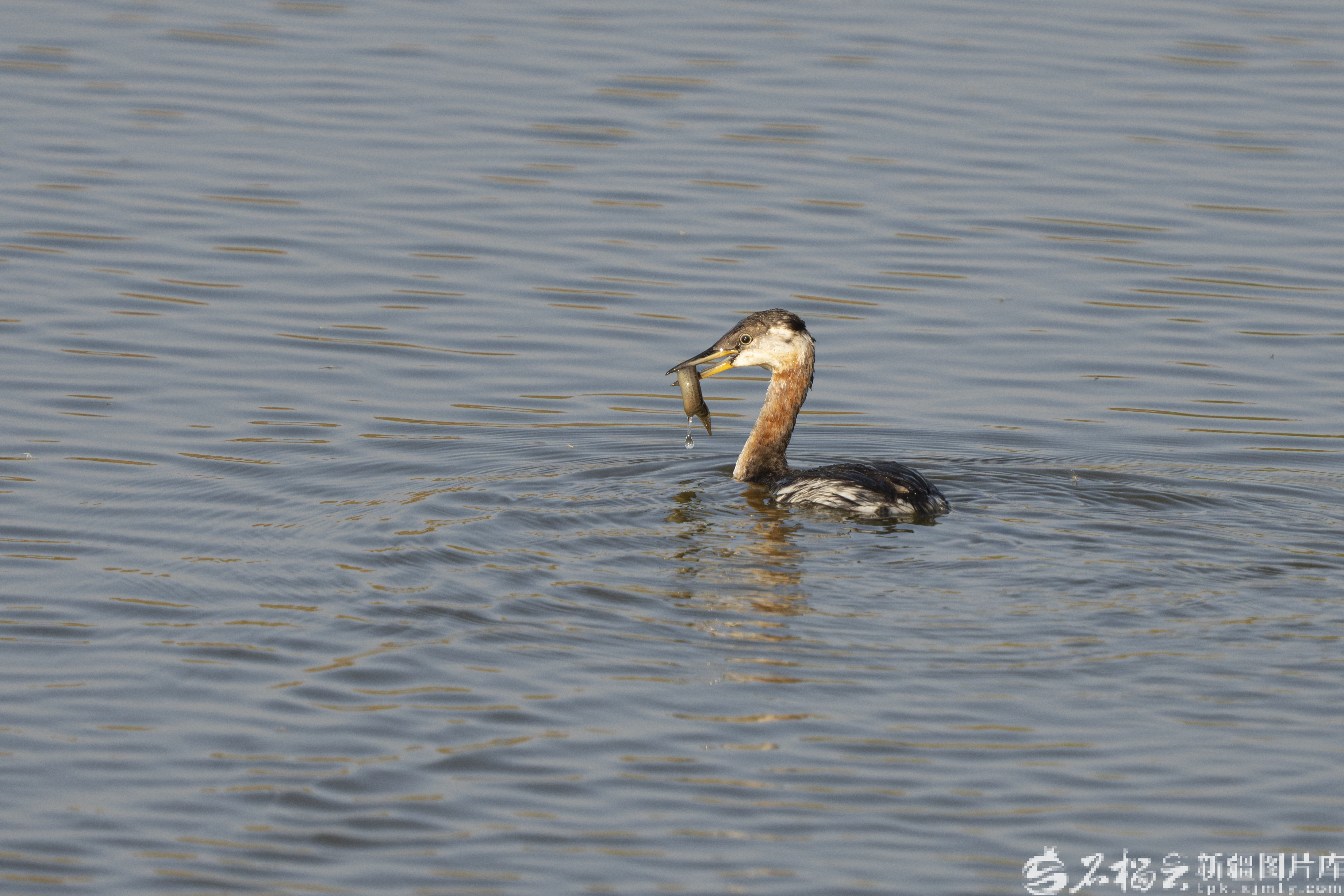 2025年10月10日下午,赤颈䴙䴘现身乌鲁木齐市米东区周边湿地。丁鹏 摄