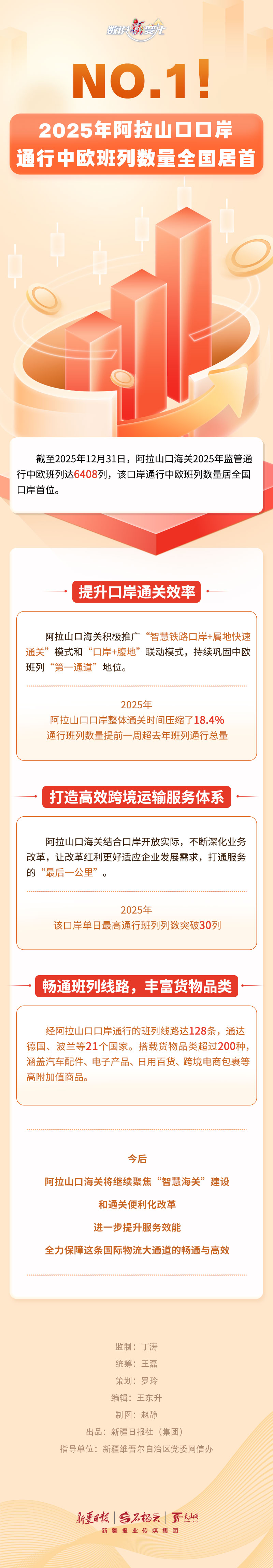 截至2025年12月31日,阿拉山口海关2025年监管通行中欧班列达6408列,该口岸通行中欧班列数量居全国口岸首位。亮眼成绩背后,海关推出了哪些关键举措?口岸运营效率如何实现持续提升?本期《数说“新”变化》带您一同探析。