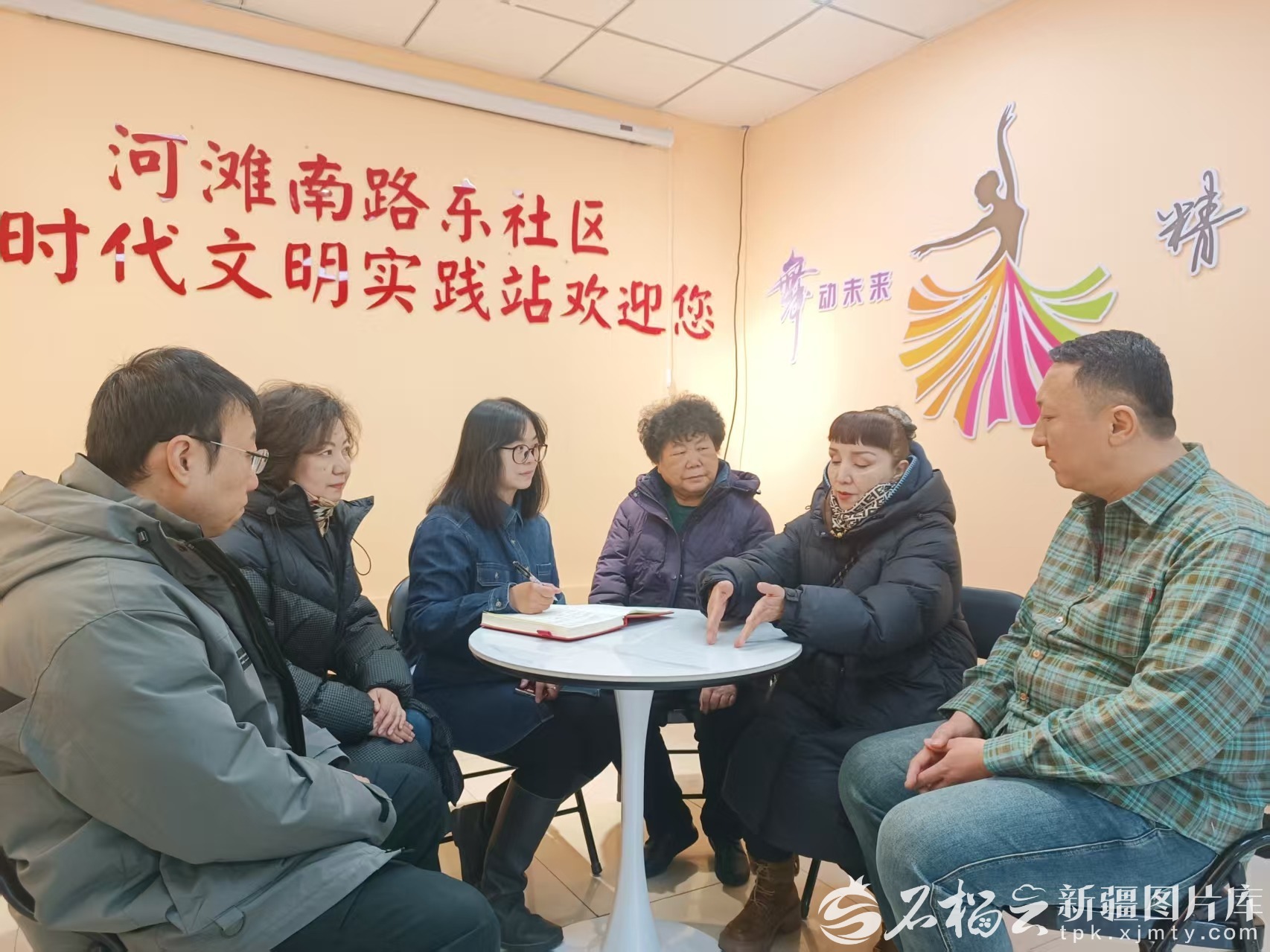 1月7日,乌鲁木齐市天山区新华南路街道河滩南路东社区新时代文明实践站,社区干部正在征求居民意见。天山网-新疆日报记者 张冬梅摄