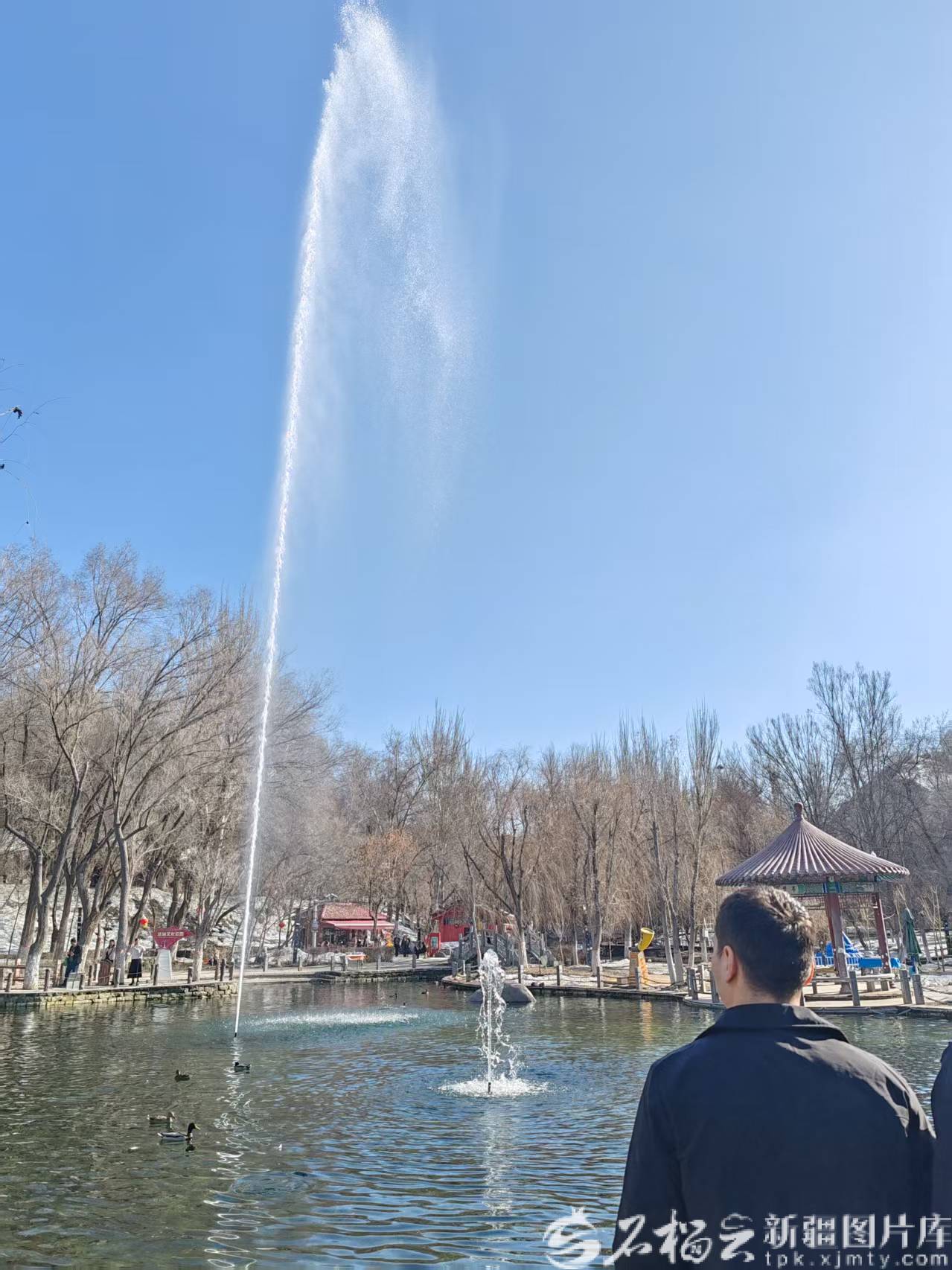 乌鲁木齐市水磨河上游段的水磨沟公园四季潺潺流水吸引市民驻足观赏。