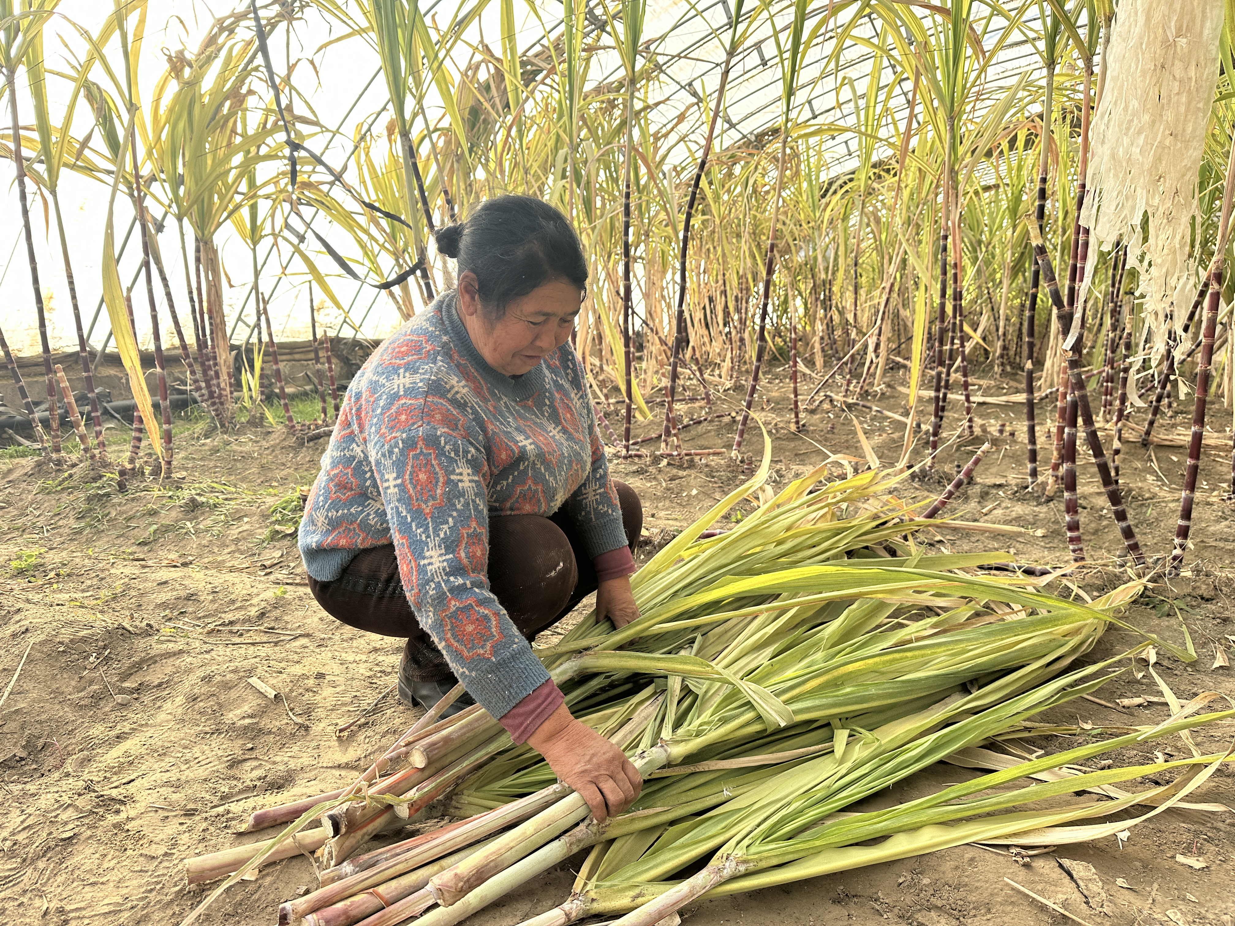 近日,走进策勒县策勒镇津南新村设施农业基地,只见401座温室大棚整齐排列,棚内种植户正忙着收甘蔗。大棚里还种有圣女果、草莓、阳光玫瑰葡萄、无花果等特色果蔬。近年来,津南新村聚焦设施农业,构建起全链条发展体系,设施农业不仅是村集体经济的“顶梁柱”,更成为村民增收的“钱袋子”。