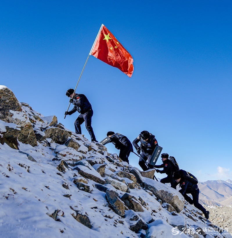 1月9日,阿克苏边境管理支队博孜墩边境派出所民警在边境一线开展巡逻踏查。凛冽寒风里,他们踏冰履雪,对每一个点位进行认真检查,织密边境安全防护网。 王举南摄