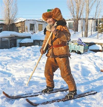 阿勒泰冬季平均积雪厚度可达1至2米,积雪期近210天。“大雪封山时,马走不动,牧民就靠滑雪板出行。”斯兰别克·沙合什说,毛皮滑雪板曾是牧民冬天在深山里出行的必备交通工具,随着牧民收入增加、交通基础设施改善,毛皮滑雪板从交通工具转变为体育运动和旅游观光项目产品。