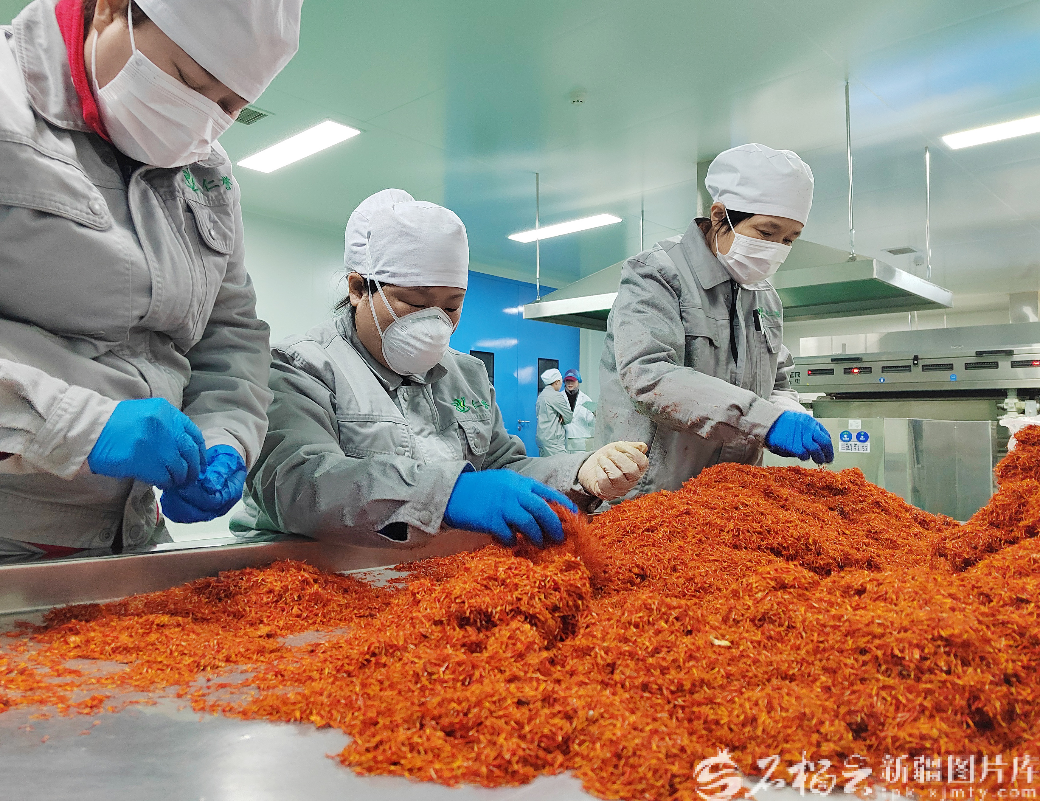 1月12日,工作人员手工捡选红花。