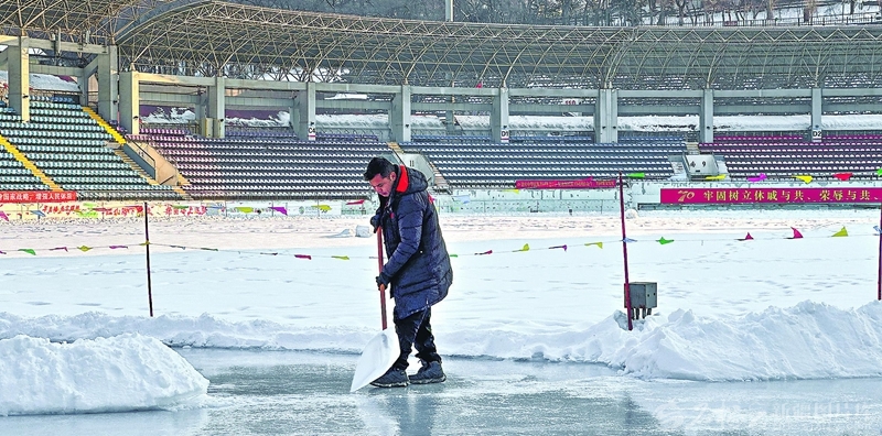 浇冰工作已持续近20天。一天中最冷的时候,即便身着厚衣,寒气仍会钻进身子、灌进鞋袜。“冷,但我们希望温度低些,这样冰面才能冻住。”