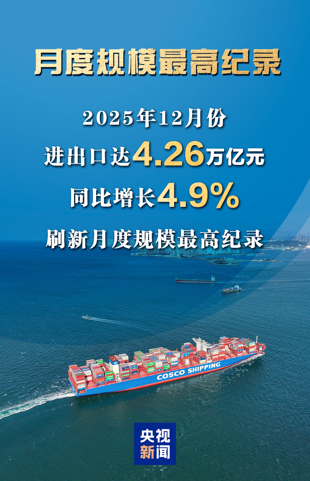 据海关统计,2025年我国外贸进出口达45.47万亿元,增长3.8%。其中,出口26.99万亿元,增长6.1%;进口18.48万亿元,增长0.5%。一组图看我国2025年外贸进出口成绩单↓