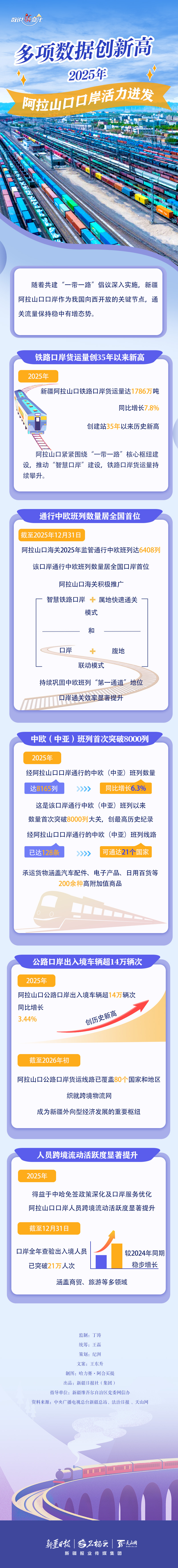 随着共建“一带一路”倡议深入实施,新疆阿拉山口口岸作为我国向西开放的关键节点,通关流量保持稳中有增态势。2025年,该口岸交出了怎样的年终成绩单?有哪些亮点?今天的《数说“新”变化》一起来看看。