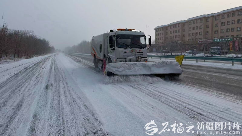 新疆公路人提前储备物资、及时清除路面积雪,确保道路安全畅通。