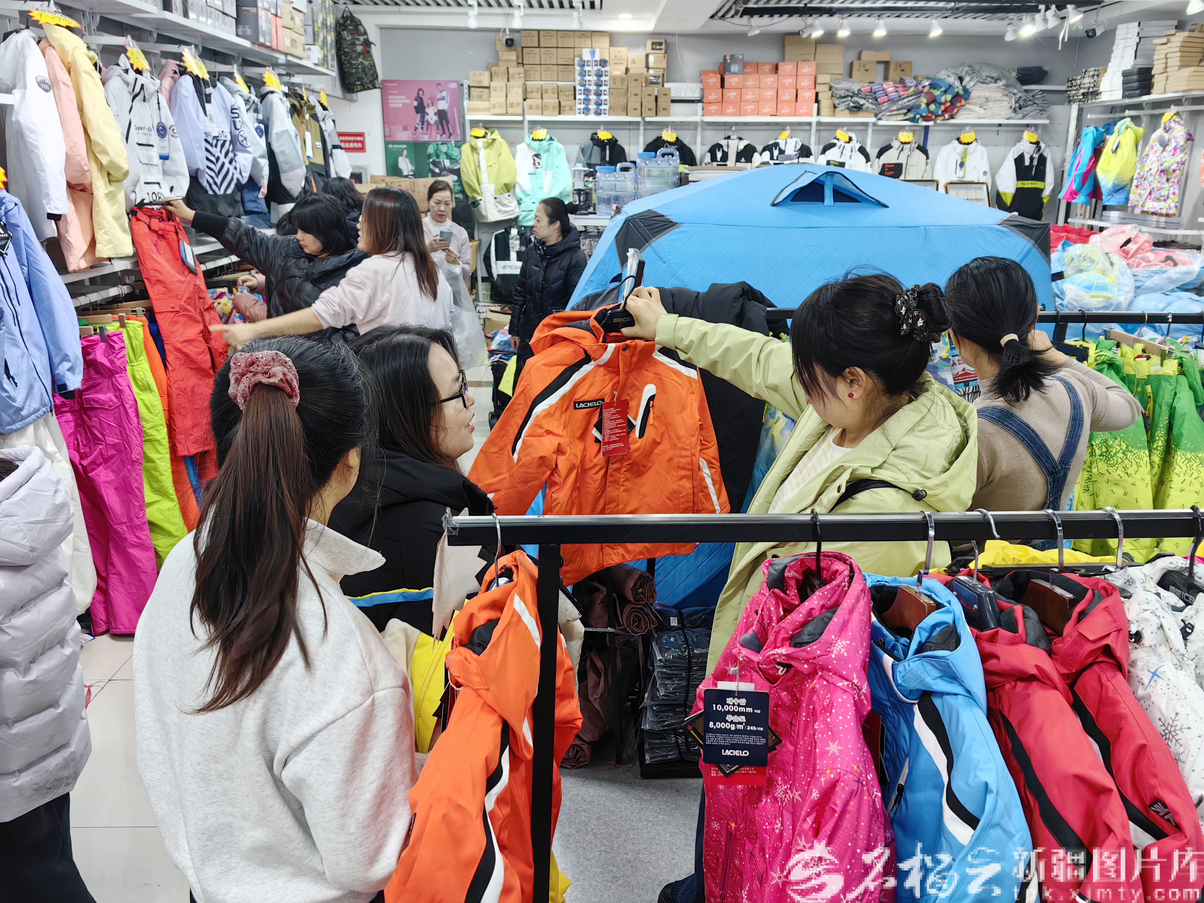 1月20日,市民在乌鲁木齐市一家户外装备店选购防寒装备。