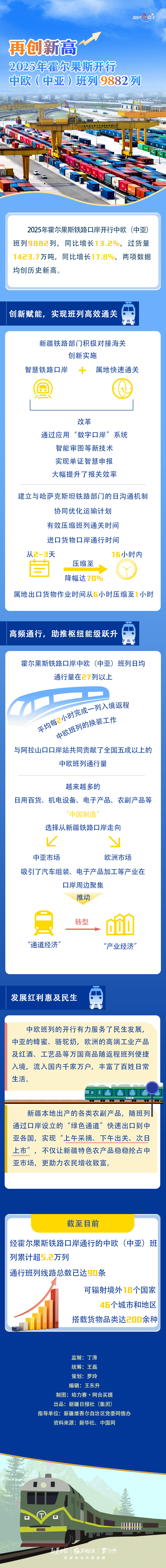 数说“新”变化丨再创新高 2025年霍尔果斯开行中欧(中亚)班列9882列