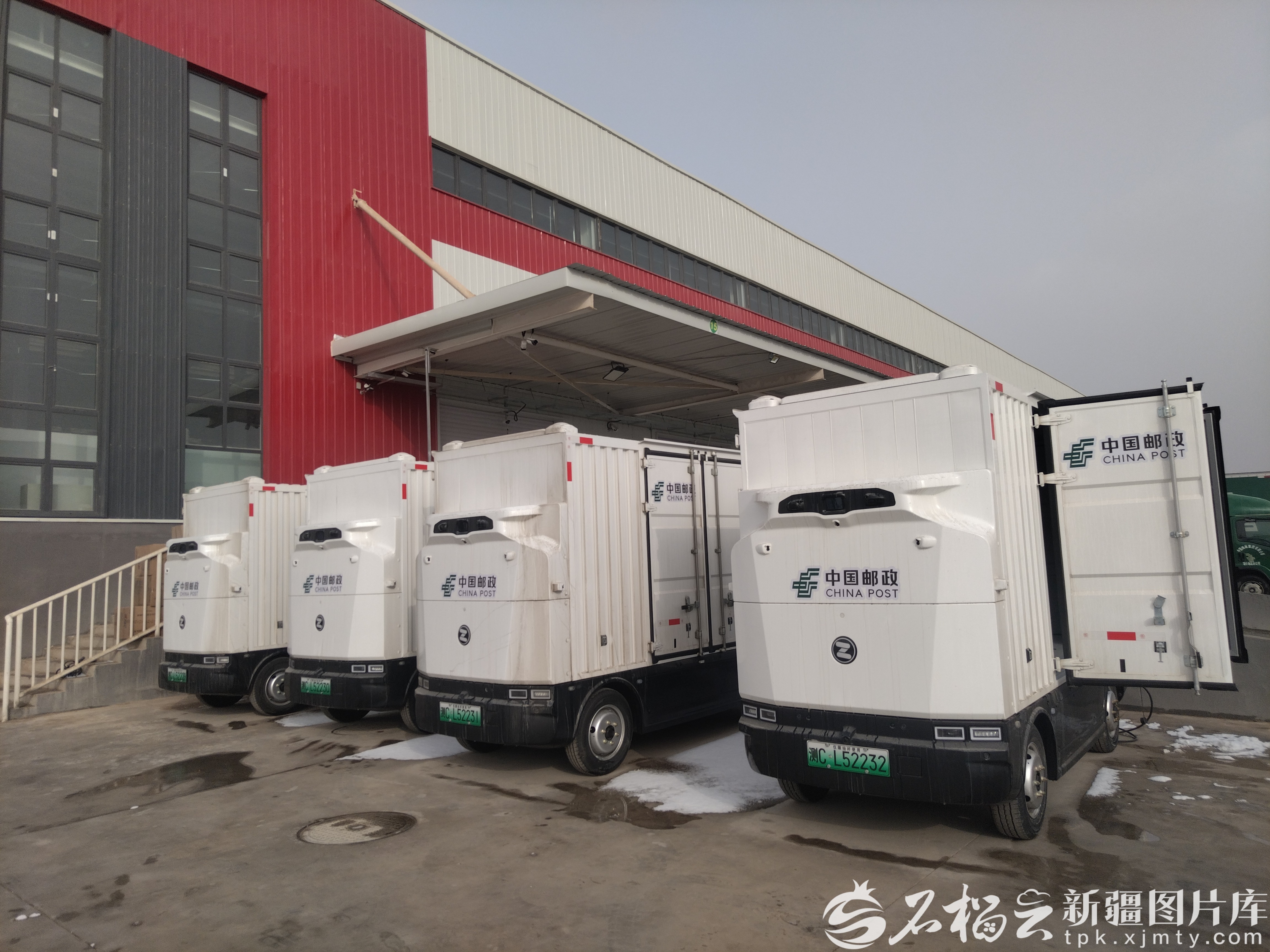 1月20日,中国邮政集团有限公司喀什地区分公司二级邮区中心的4辆无人快递车。 徐强摄