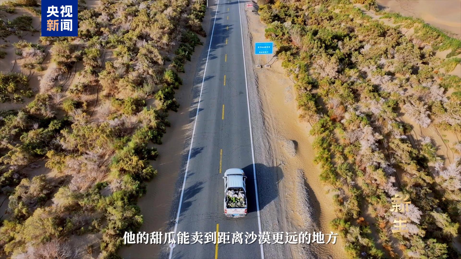 一条14公里长的柏油路将村庄和沙漠公路连接起来,也连通了更远的远方;2000亩防沙林,挡住了风沙;现代化的滴灌,滋养着瓜田。