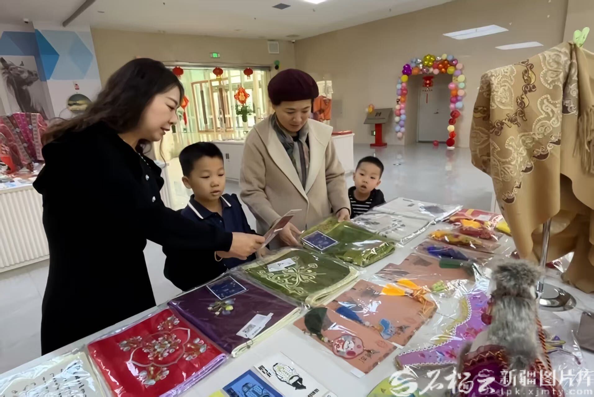马利红代表(左)在向小朋友展示非遗产品(资料图)。图片由本人提供
