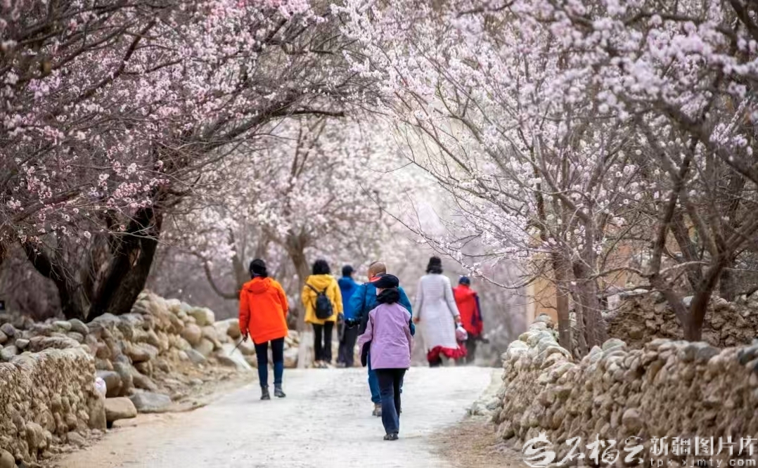 杏花季的阿克陶县的塔尔塔吉克族乡景色美不胜收(资料片)。谢智摄
