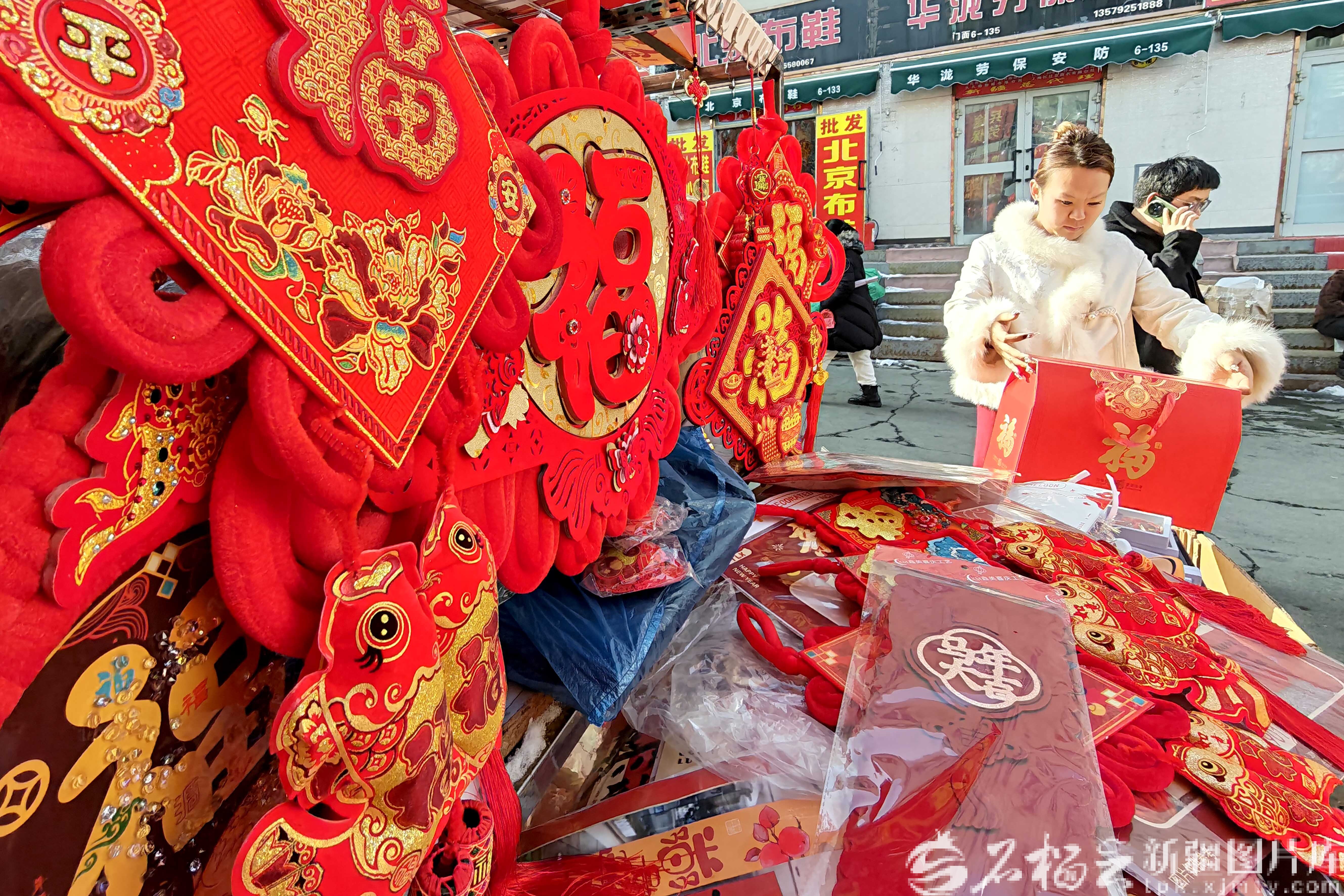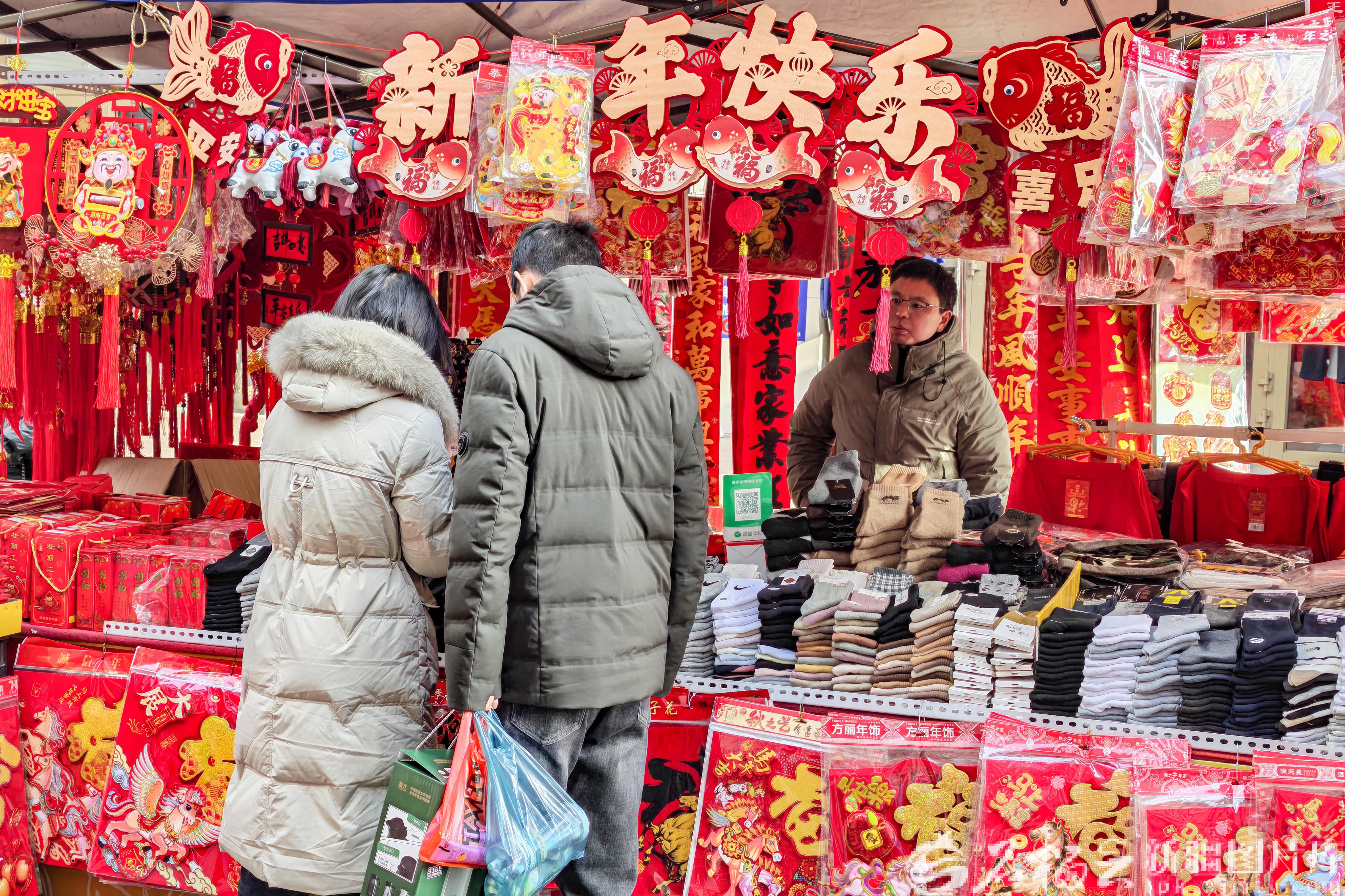 “快过年了,来挑副春联和福字,贴在家里喜庆!”正在挑选对联的市民王疆来笑着说,“每年春节前都要来商贸城转转,这里品种全,价格实惠,年味也浓。”