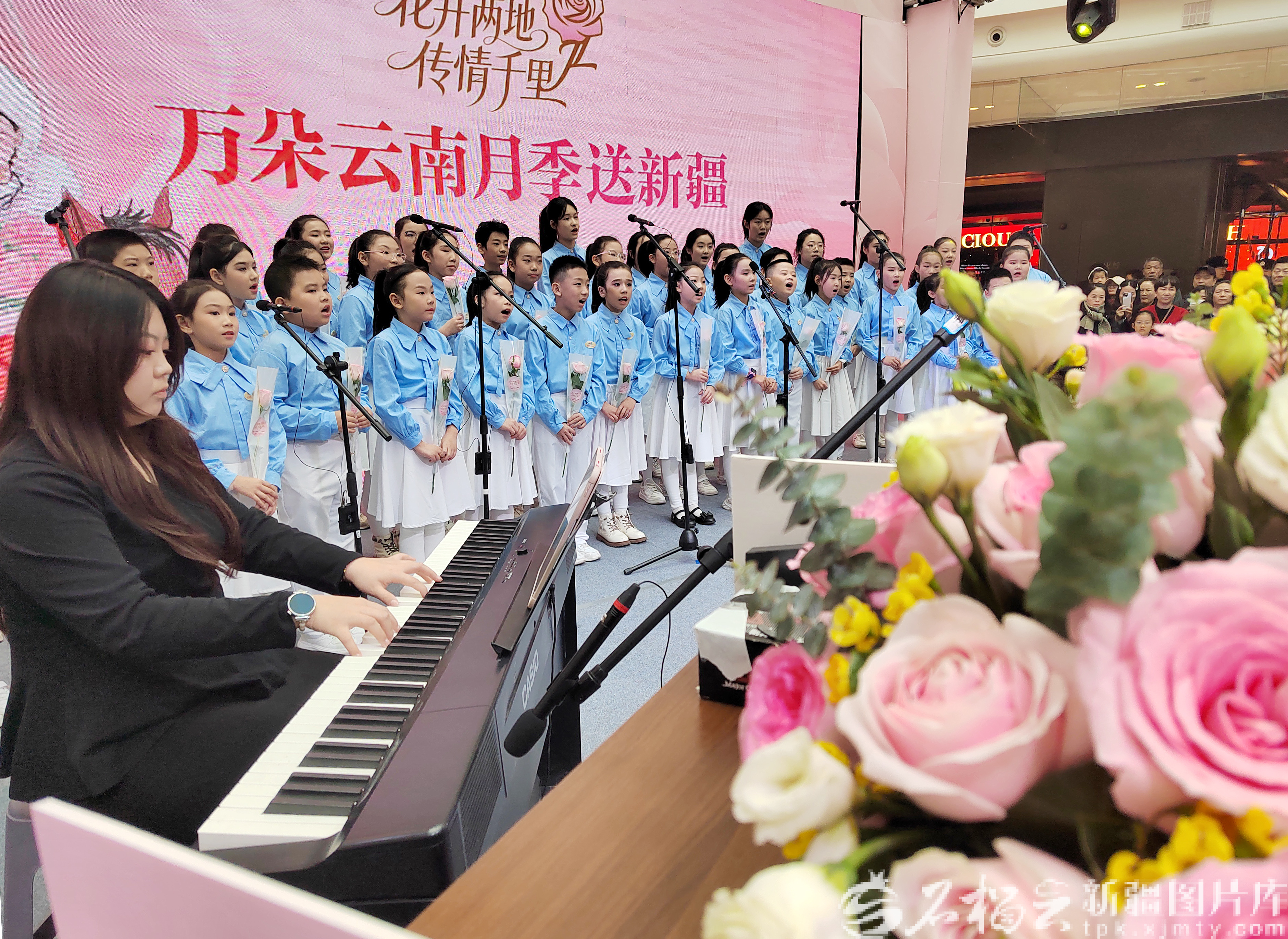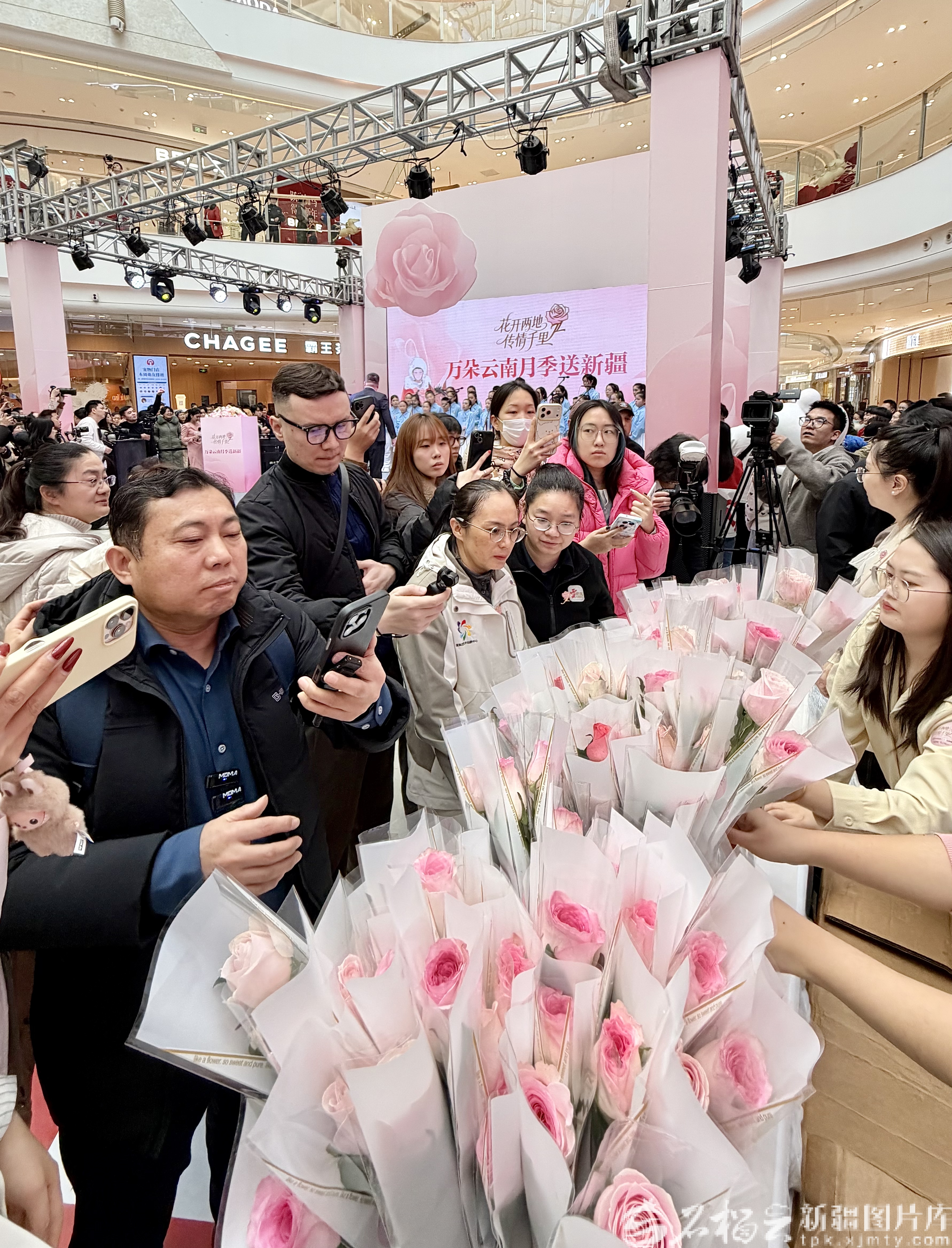 当日,新疆日报石榴云客户端、云南日报云新闻客户端、云南省农业科学院花卉研究所联合开展的“花开两地 传情千里——万朵云南月季送新疆”活动在新城控股集团乌鲁木齐会展吾悦广场举办,来自云南的鲜切月季免费赠送给新疆各族群众,温暖与敬意在传递中直抵人心。