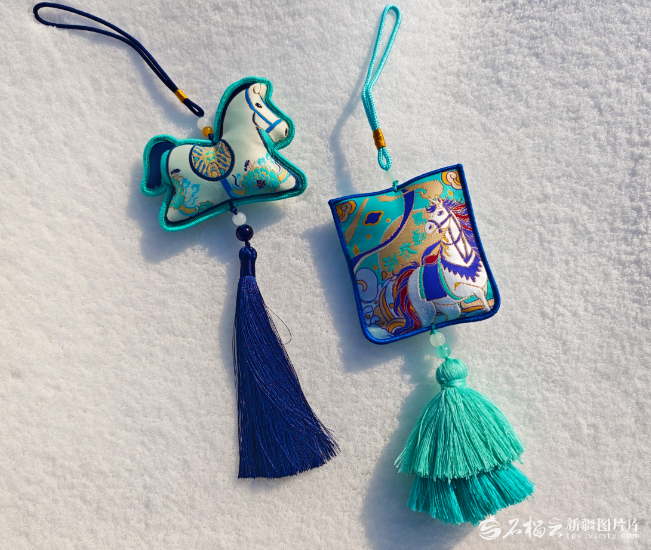 新疆博物馆文创区的“马到成功”香囊。新疆博物馆文创区供图