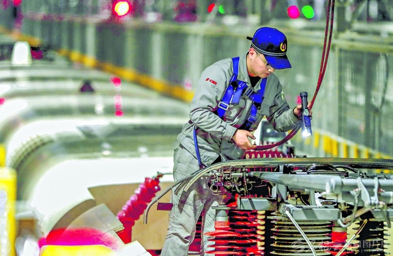 2月4日,中国铁路乌鲁木齐局集团有限公司乌鲁木齐车辆段动车片区,机械师手持多功能手电检查维护返程动车的每一个部件。