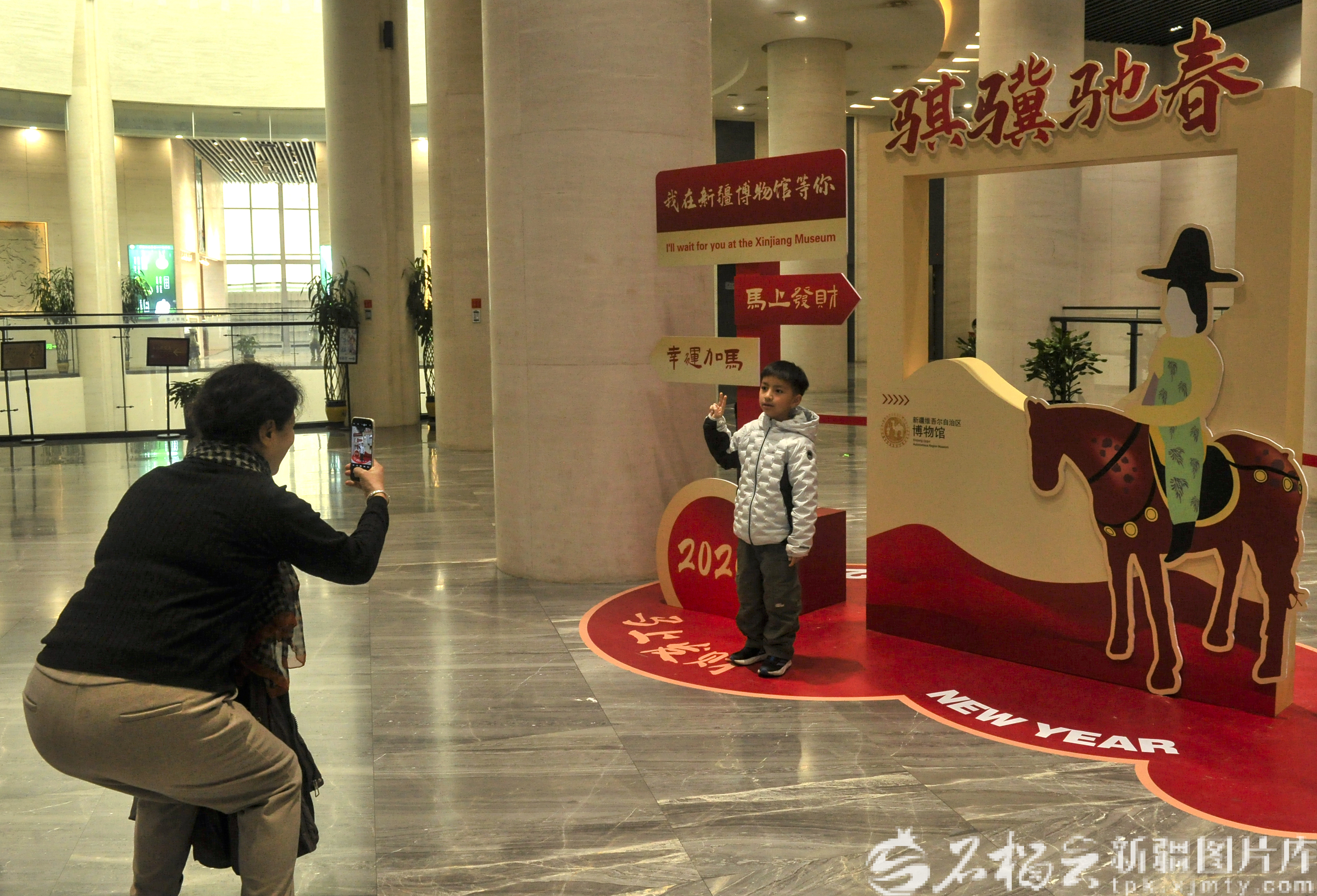 2月13日,游客在新疆博物馆“骐骥驰春——丙午马年新春特展”互动区打卡。