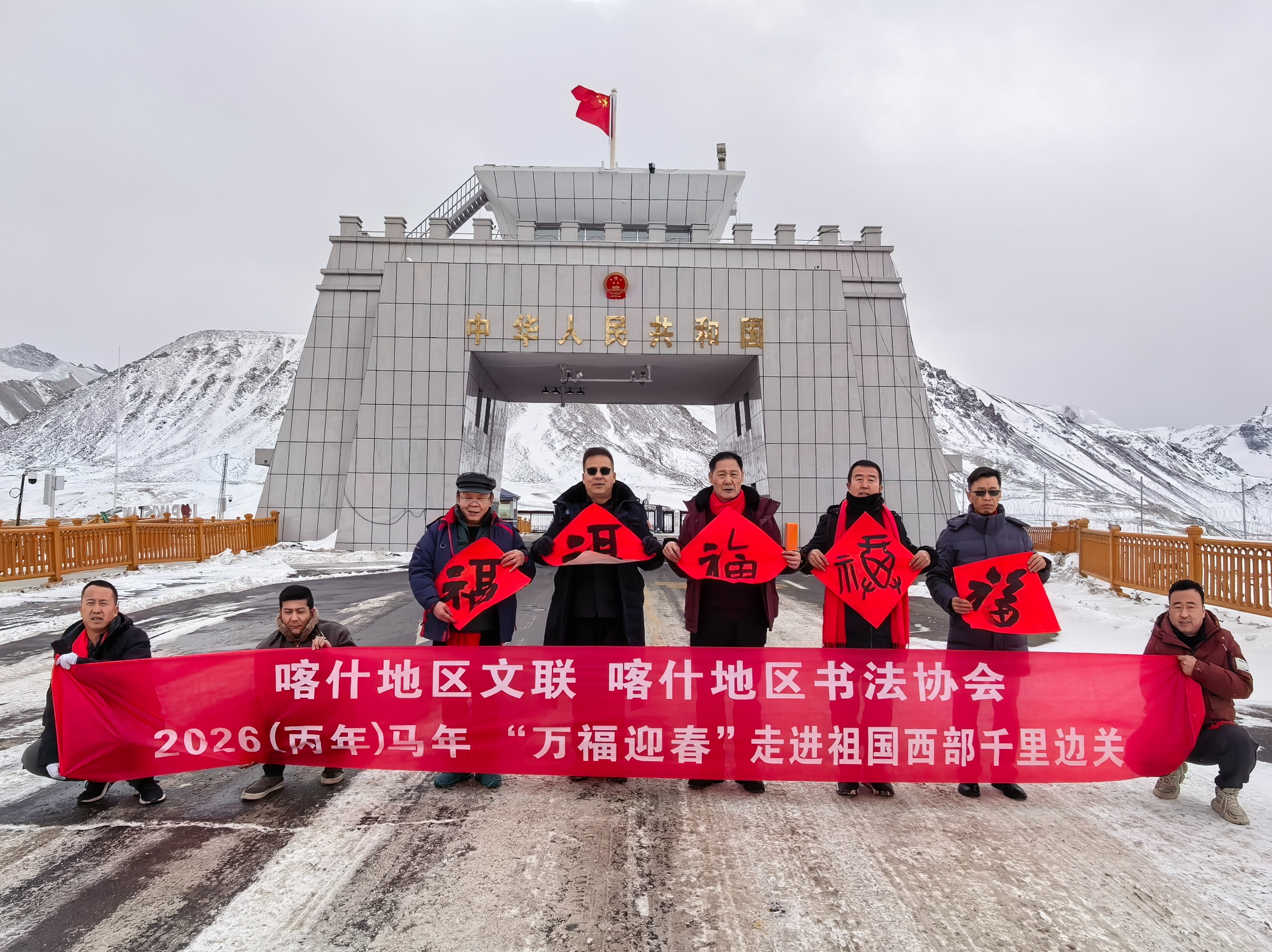 这份温暖也传递到了帕米尔高原。喀什地区书法家协会主席张运江带领7名书法家,冒着严寒与高原反应,奔赴塔什库尔干塔吉克自治县等地,3天走遍19个基层单位,为边防官兵、护边员和当地居民送上新春祝福。