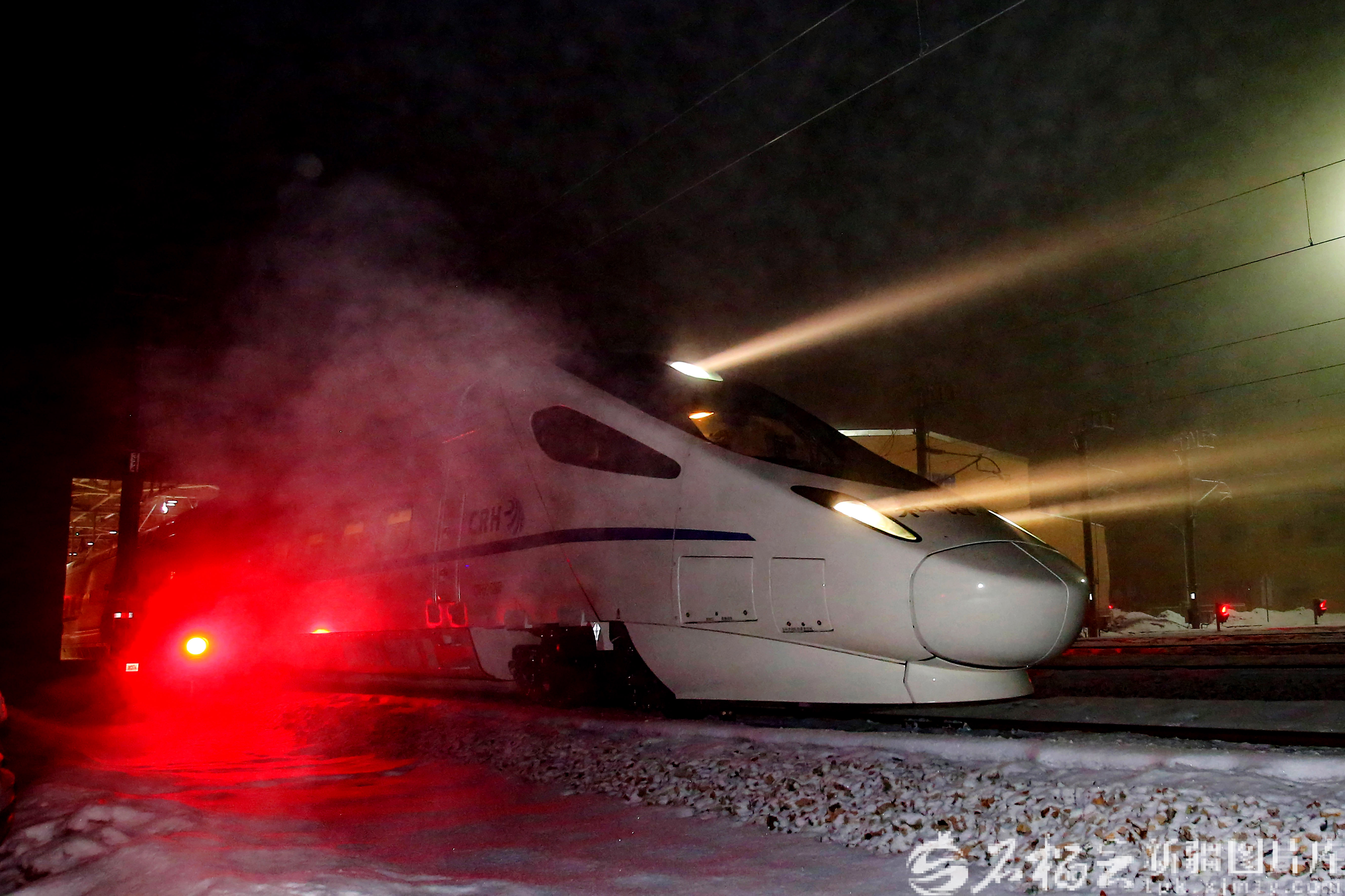 2月5日凌晨,中国铁路乌鲁木齐局集团有限公司乌鲁木齐车辆段动车片区动车组列车陆续驶出存车场。