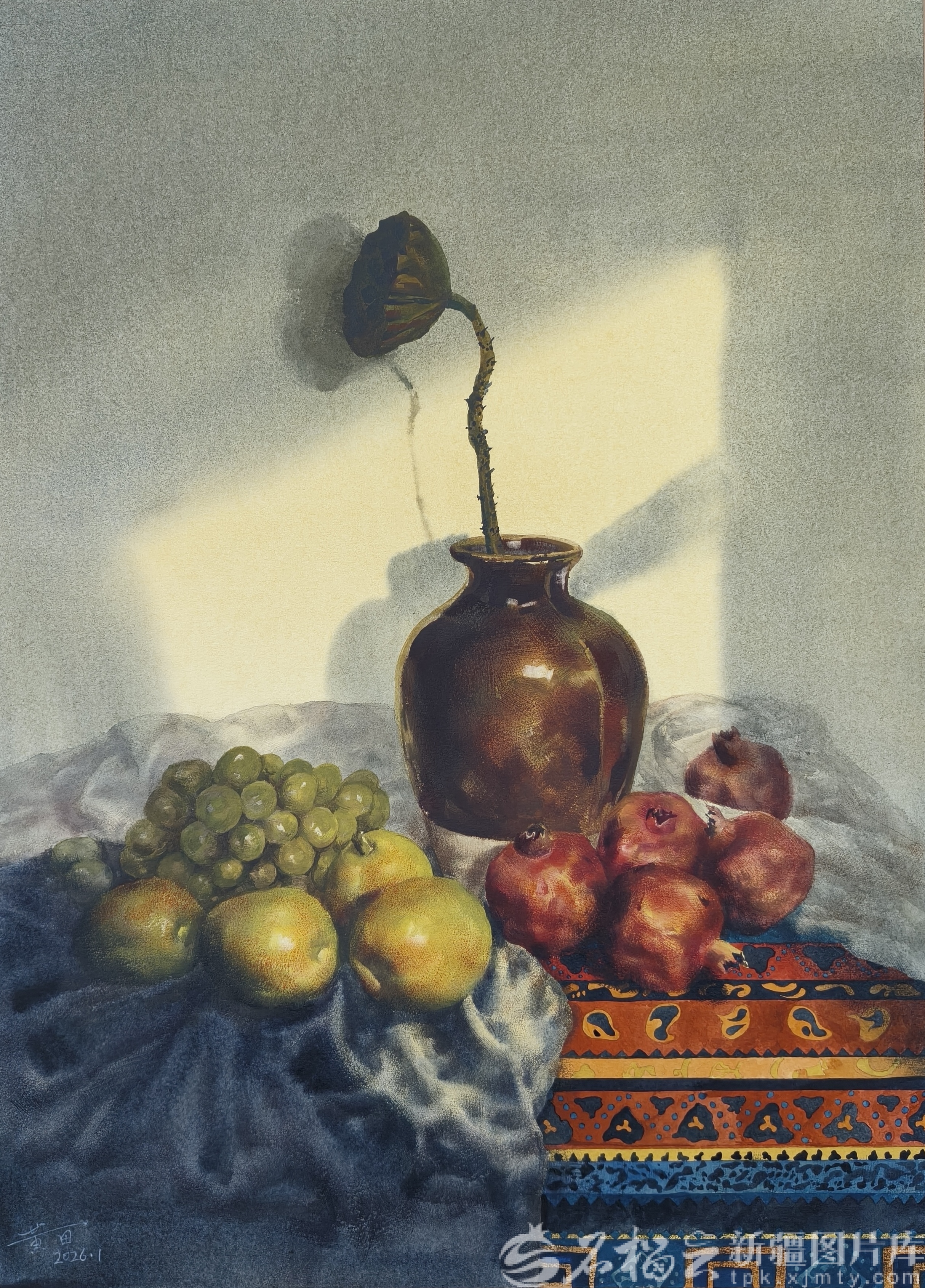 春润天山,彩绘疆情。值此新春佳节,我们甄选新疆画家水彩佳作,以斑斓水色致敬这片沃土的壮阔与温情。《青铜遗韵》沉淀着丝路千年的文脉,《暖香满庭》氤氲着人间烟火的温情,《午后光痕》定格着岁月流转的静好,《晚牧》铺展着草原牧歌的诗意……画家们以水彩的通透灵动,融新疆地域之深厚底蕴,将天山的雄奇巍峨、绿洲的温润绵长与时代的蓬勃朝气,凝于笔端、浸于色彩,藏于帧帧画作之中。