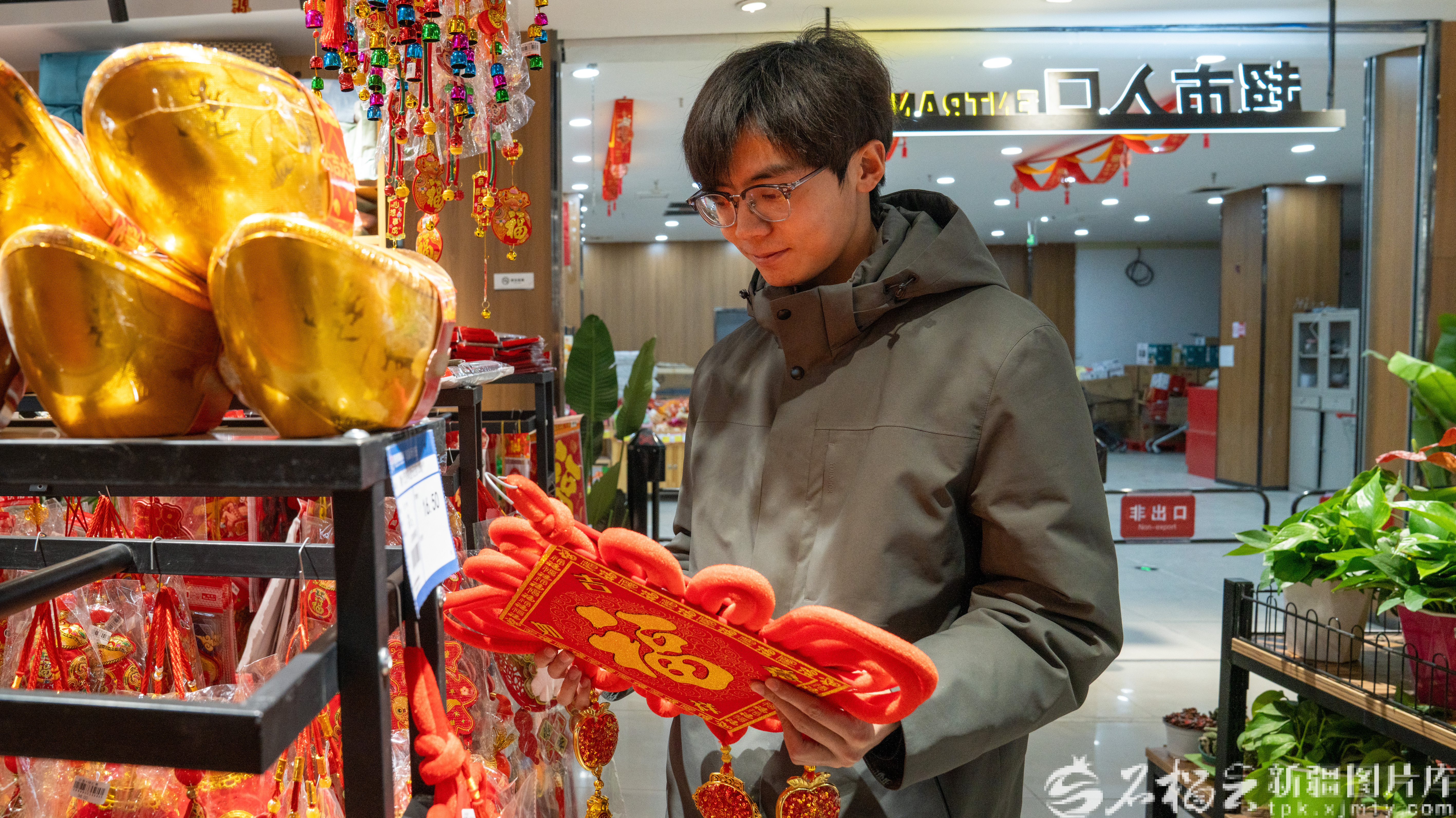 2月15日,阿图什市市民在超市选购节日挂饰。朱鑫摄